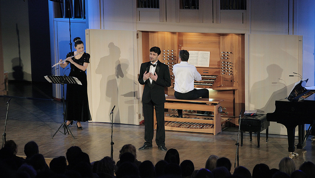 Молодые супруги Ксения и Евгений Авраменко, продолжая прекрасную мировую традицию семейного музицирования, выступили с произведениями и переложениями для флейты и органа. Вместе с ними на сцену вышел солист Пермской оперы Алексей Герасимов.