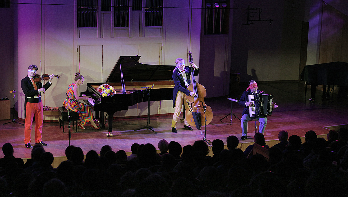 Во втором отделении оркестр играл лёгкие праздничные произведения, остроумно сгруппированные в сюиты: три произведения Чайковского (два — из «Времён года»), панданом — «Славянский танец» Дворжака и «Венгерский танец» Брамса, Summertime Гершвина, быстрая полька «В полёте» Йозефа Штрауса… Всё такое сладкое! Но ощущения приторности не появилось, ведь эта комфортная музыка была прервана четырьмя танго Астора Пьяццоллы, драматичными, острыми, пряными и, между прочим, совершенно не «заигранными», и даже мегапопулярное «Либертанго» звучало по-новому благодаря остроумной аранжировке. Вообще, аранжировки у Kremlin сами по себе искусство: кажется, что произведение было изначально написано для такого состава инструментов.