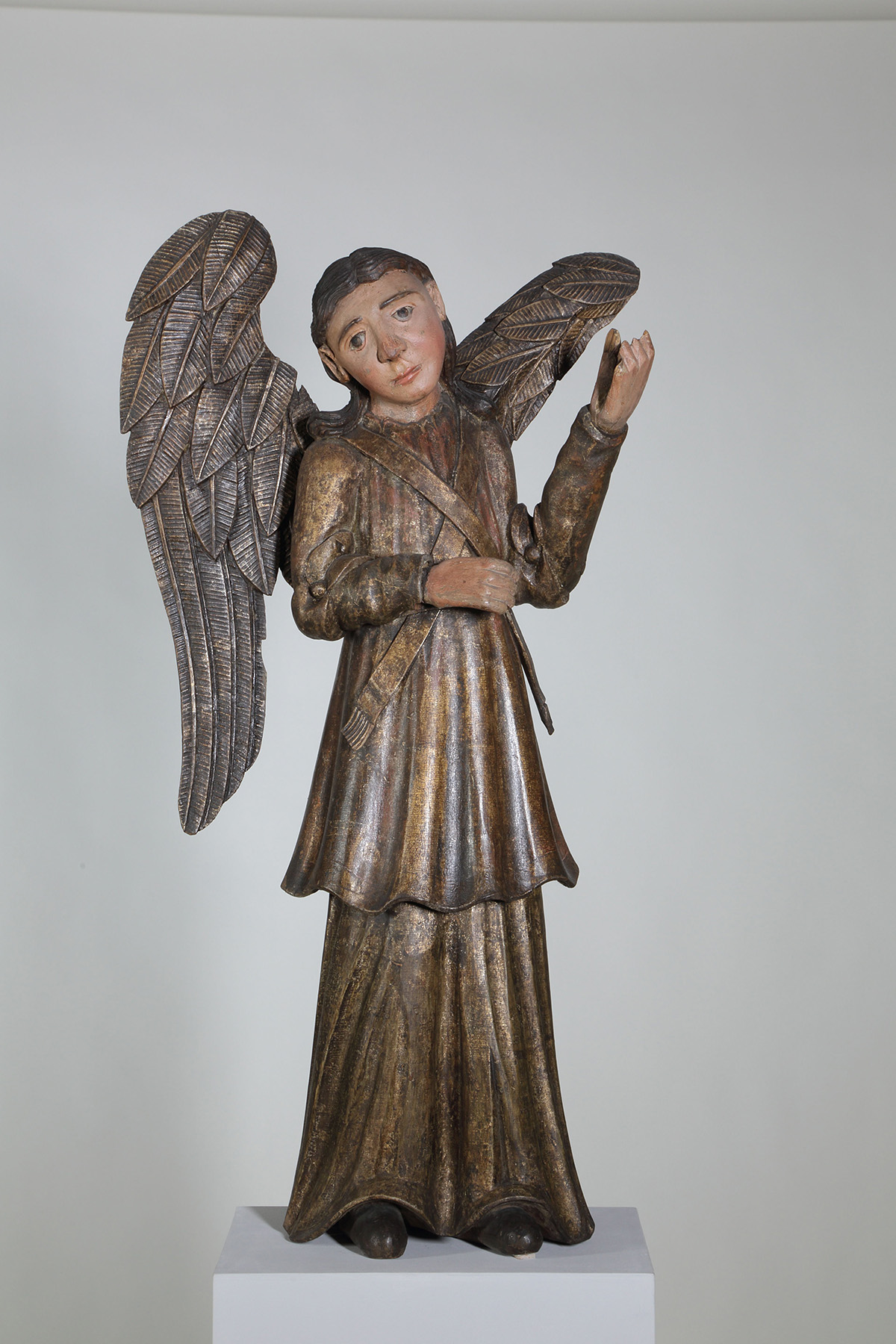 Парные ангелы из коллекции Пермской художественной галереи, участвующие в выставке «Христос в темнице» («Манеж», Санкт-Петербург)
