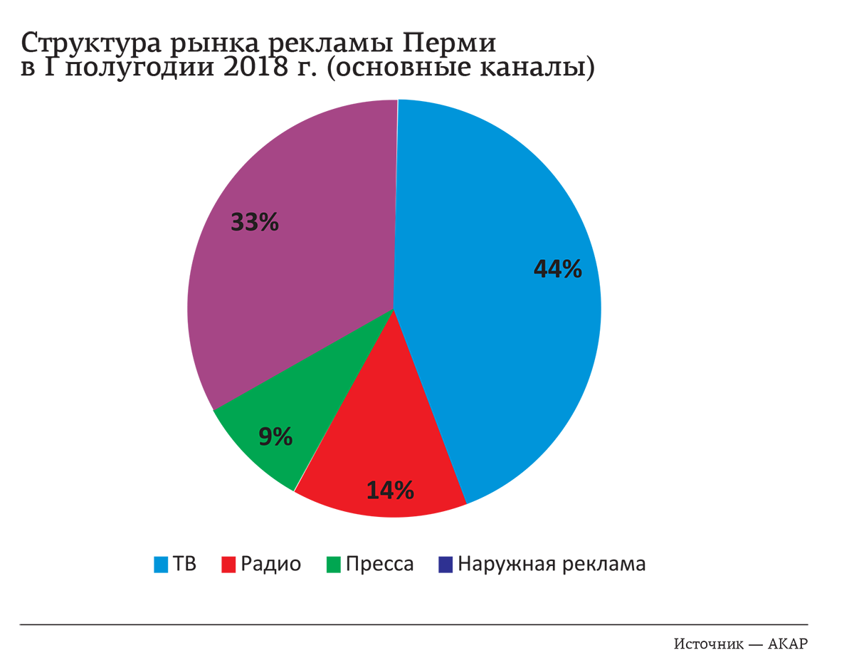 Оценки глубины падения рекламного рынка расходятся. Ряд экспертов говорят о том, что серьёзного сокращения рекламных бюджетов не произошло, однако общие данные по региональному рынку свидетельствуют об обратном. По данным Ассоциации коммуникационных агентств России (АКАР), объём размещения рекламы в Пермском крае в наиболее массовых каналах (ТВ, радио, наружная реклама, пресса) в прошлом году сократился на четверть по сравнению с 2013—2014 годами. Однако эта оценка не учитывает динамику так называемых BTL-каналов (реклама в транспорте, в лифтах, промомероприятия и т. д.), которые пострадали в большей степени, но в то же время в денежном выражении занимают сравнительно небольшую долю рынка.