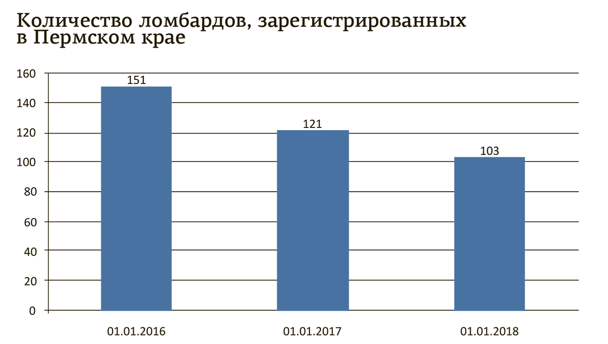 По данным пермского отделения Уральского ГУ Банка России, количество ломбардов в Пермском крае в последние годы сокращается. В целом по стране их тоже становится меньше. Но за время кризиса, то есть с 2014 года, вместе с микрофинансовыми организациями (МФО) и банками ломбарды увеличили объём выданных займов. Они становятся источником коротких и быстрых денег для граждан, оказавшихся в трудной ситуации. Участники рынка отмечают, что развитие ломбардного бизнеса отчасти сдерживает кредитная активность МФО и банков, а регулирование со стороны ЦБ заставляет их уходить в тень.