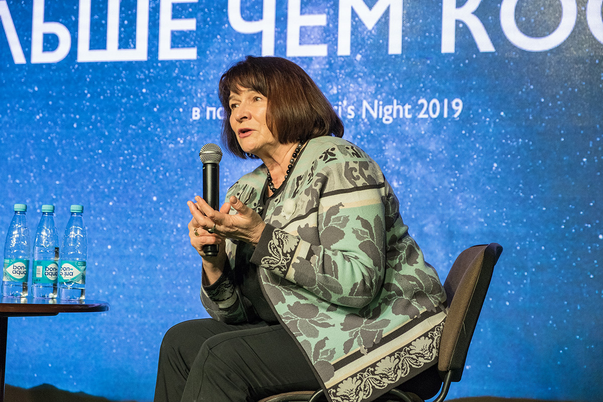 — Для меня космос — это 60-е годы прошлого века. Мне кажется, что космическая эпоха интенсивного периода закончилась, хотя, возможно, будет второй рывок и люди будут покорять планеты. В младшей школе я страшно увлекалась советской фантастикой. Мой папа боролся со мной: «Пока не прочитаешь «Повести Белкина» Пушкина, ни одной фантастической книжки не дам». Но я всё равно читала фантастику и периодически задавала родителям вопрос, когда они полетят в космос. Папа отвечал, что они вряд ли окажутся там, а мы точно полетим.