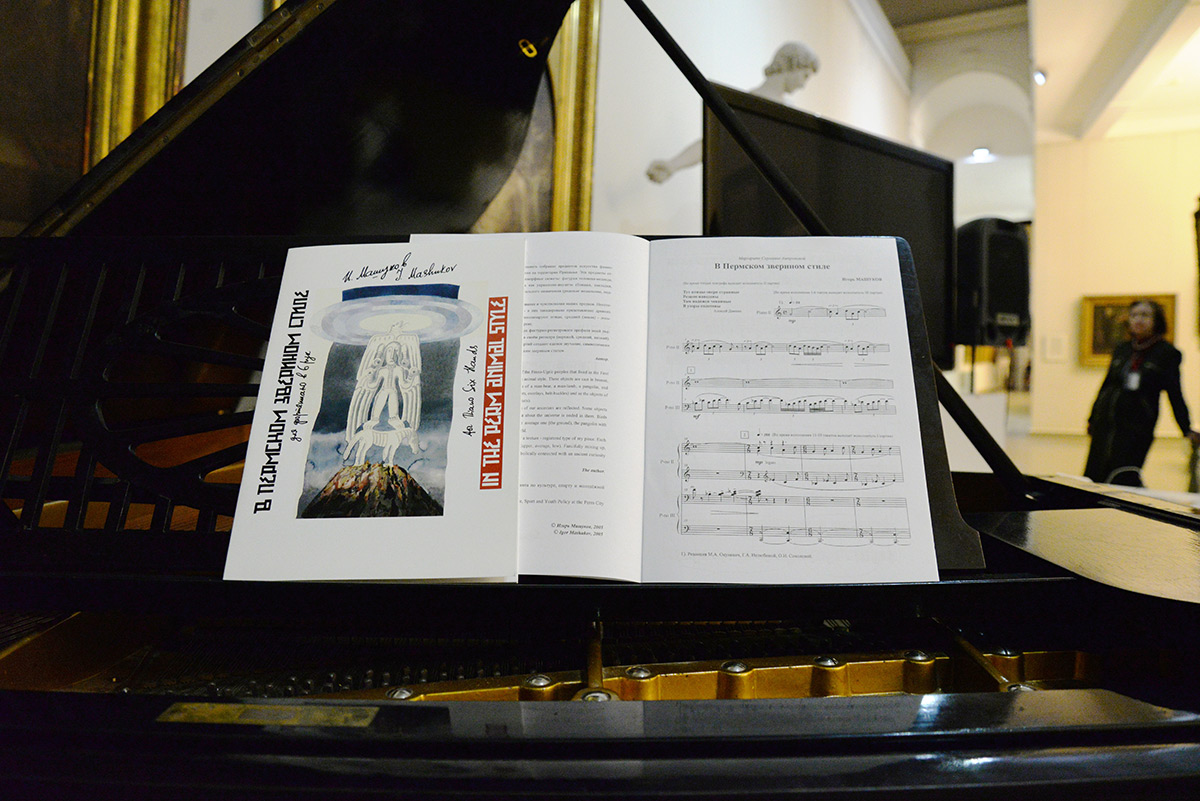 Машуков и эпиграф к пьесе подобрал — стихи Алексея Домнина: «Тут птицы, звери странные резцом наведены, там надписи чеканные в узоры сплетены...» Пьеса произвела впечатление и стала популярной, её исполняли в разных городах и странах, но исполнение Марины Окуневич, Галины Нелюбиной и Ольги Соколовой, по инициативе которых он и написал «В пермском зверином стиле», Машуков считает лучшим, эталонным.