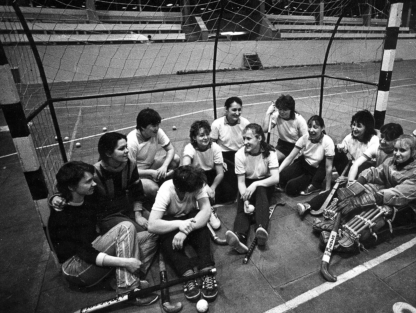 Участницы женской команды по хоккею на траве «Дзержинец» на тренировке. Пермь. 1988 год