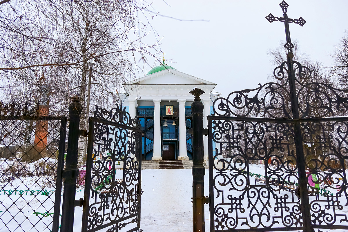 Это не просто необычный архитектурный элемент, но ещё и демонстрация творческой мощи машиностроительного завода — кормильца города на протяжении веков. Не единственная демонстрация: чугунный забор вокруг храма — из той же серии. Изготовленный в середине XIX века, он полностью повторяет рельеф местности: идёт под уклон, причём секции забора не становятся одна за другой «лесенкой», а соединяются ровной лентой. Совсем недавно, уже в XXI веке, упавшее дерево повредило одну из секций, и было решено её заменить, но как ни старались современные наследники строгановских мастеров, не смогли понять, как же им рассчитать форму этой секции, чтобы она встала в забор, как родная!