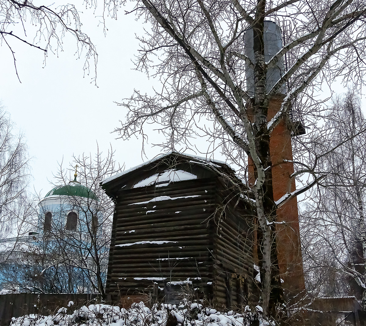 Поправочка: в первую очередь сохраняется не простое, а уникальное. Совсем рядом с плотиной — храм Михаила Архангела, роскошное строение в стиле классицизма 1830-х годов постройки. Три портика с колоннами — на три стороны света! Но не это сбивает с ног, а бесконечное чугунное кружево, обвивающее фасад. У здания есть большой купол, но нет колокольни: вместо этого звонница из кованого чугуна устроена прямо на фасаде, над входом, и к колоколам ведут с двух сторон две чугунные лестницы. Кажется, что фасад украшен ажурной лентой.