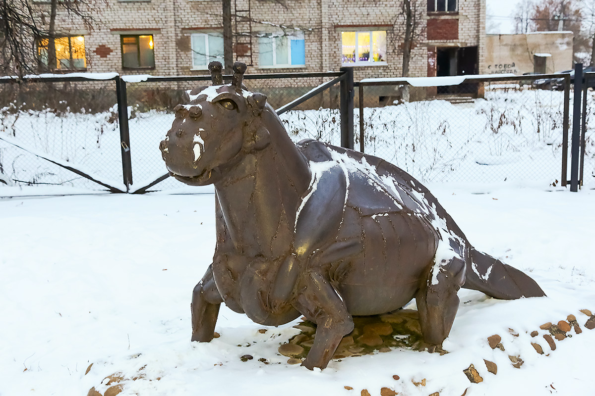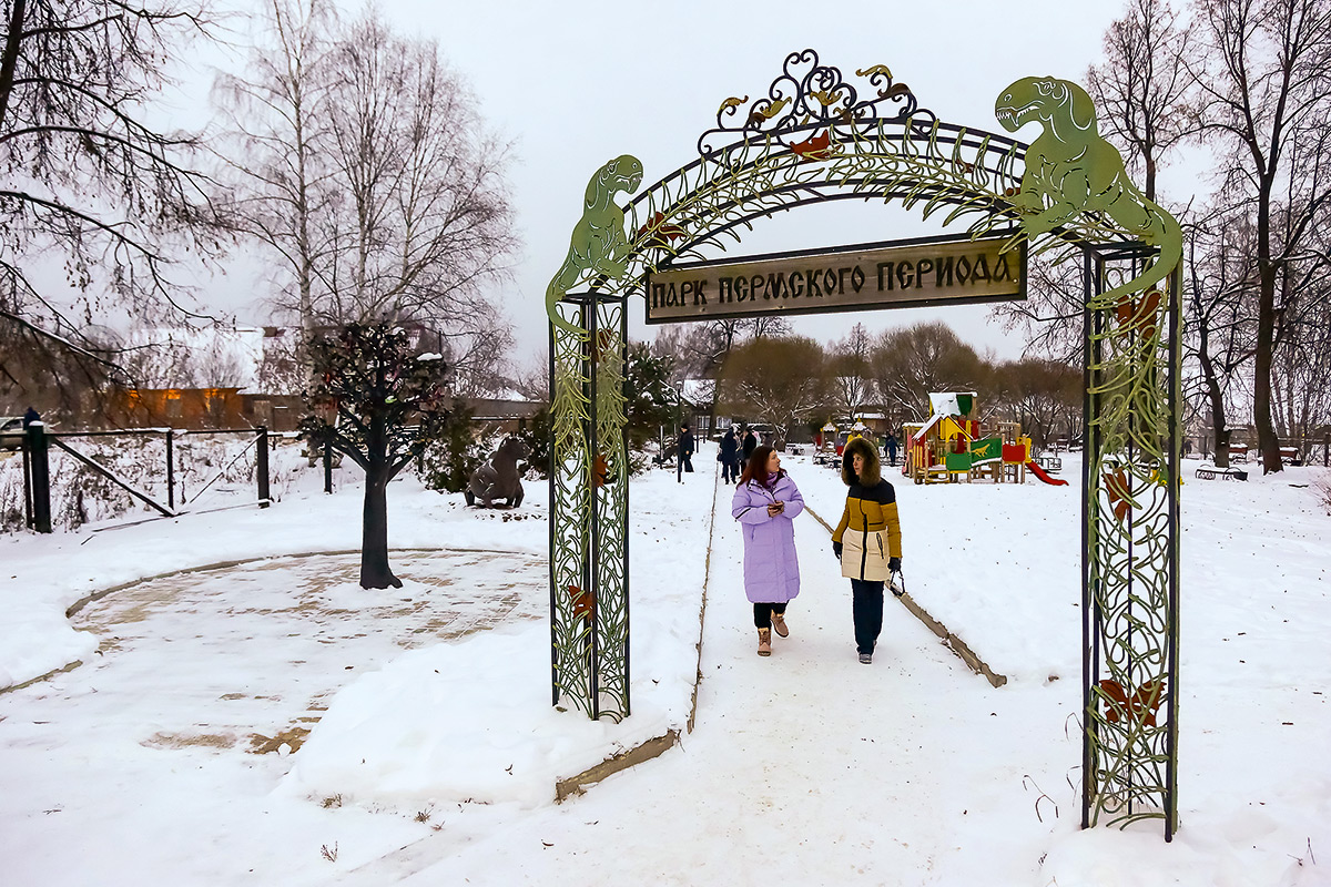 Между часами и местным краеведческим музеем расположился Парк пермского периода. Он, конечно, поменьше, чем Jurassic Park Стивена Спилберга, ну так и пермские ящеры куда меньше, чем динозавры! Вот они — прекрасные металлические скульптуры, брутально угловатые и в то же время очень живые. Ящеры сделаны в натуральную величину, и хотя по сравнению с тирексом они просто котята, но комодского дракона могли бы и сожрать.