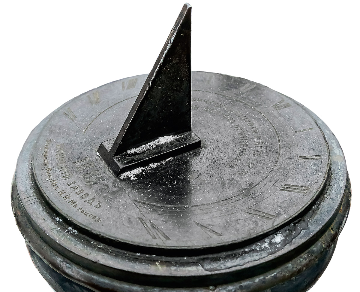 В двух шагах от водокачки — главная достопримечательность Очёра: солнечные часы. Далеко не каждый город, будь он большой или маленький, может похвастать, что у него есть центр — настоящий центр, та самая точка, где сходятся все пути и направления. В Очёре такой центр есть — часы установлены на перекрёстке, через который проходит поток заводчан в начале и в конце рабочего дня, направляясь по домам от проходной — или утром к проходной, за которой виднеются длинные одноэтажные корпуса. Точно так же, потоком, шли рабочие в те времена, когда местные инженеры установили часы, в солнечный день показывающие самое точное время.