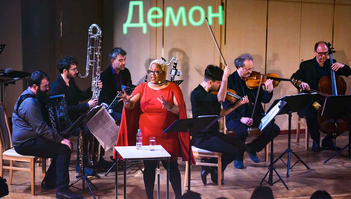 — Не-е-ет, это не обычная партитура! Там есть варианты развития музыки в зависимости от того, как пойдёт перформанс. Я как рассказчик понимаю, что мне может понадобиться больше или меньше времени на один и тот же текст. Если я говорю с кем-то, у кого английский язык родной, яговорюпоанглийскибыстрокактолькомогу! Если я общаюсь с аудиторией, для которой английский язык неродной, я — стараюсь — говорить — как — можно — яснее — и — чётче. Я знаю, где сделать паузу, потому что знаю, как люди слушают: я же выступаю с перформансами с пятилетнего возраста. Я чувствую, когда держу аудиторию, и чувствую, когда её теряю.