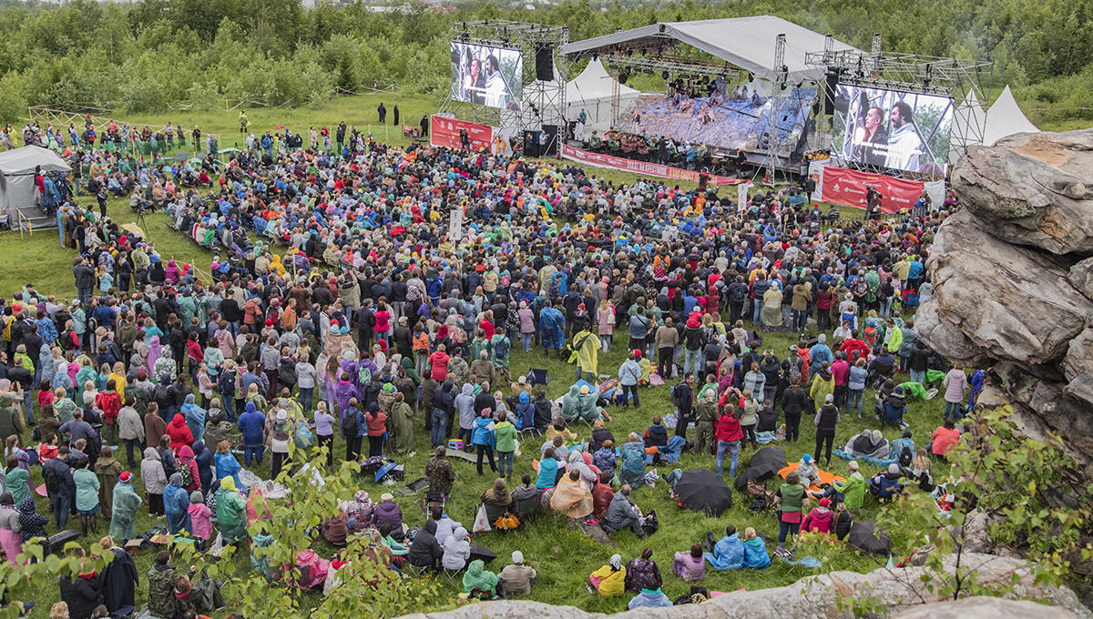 В восьмой раз в Губахе показали музыкальный спектакль на вершине Рудянского споя. За те годы, что здесь проходит ландшафтная театральная акция, бывало всякое. Уральская погода, как известно, любит пошутить, но на сей раз она превзошла себя. Впервые благодаря силам природы мюзикл на сцене превратился в настоящую драму.
