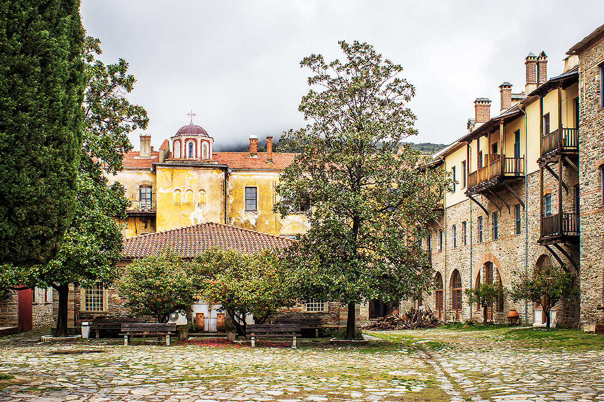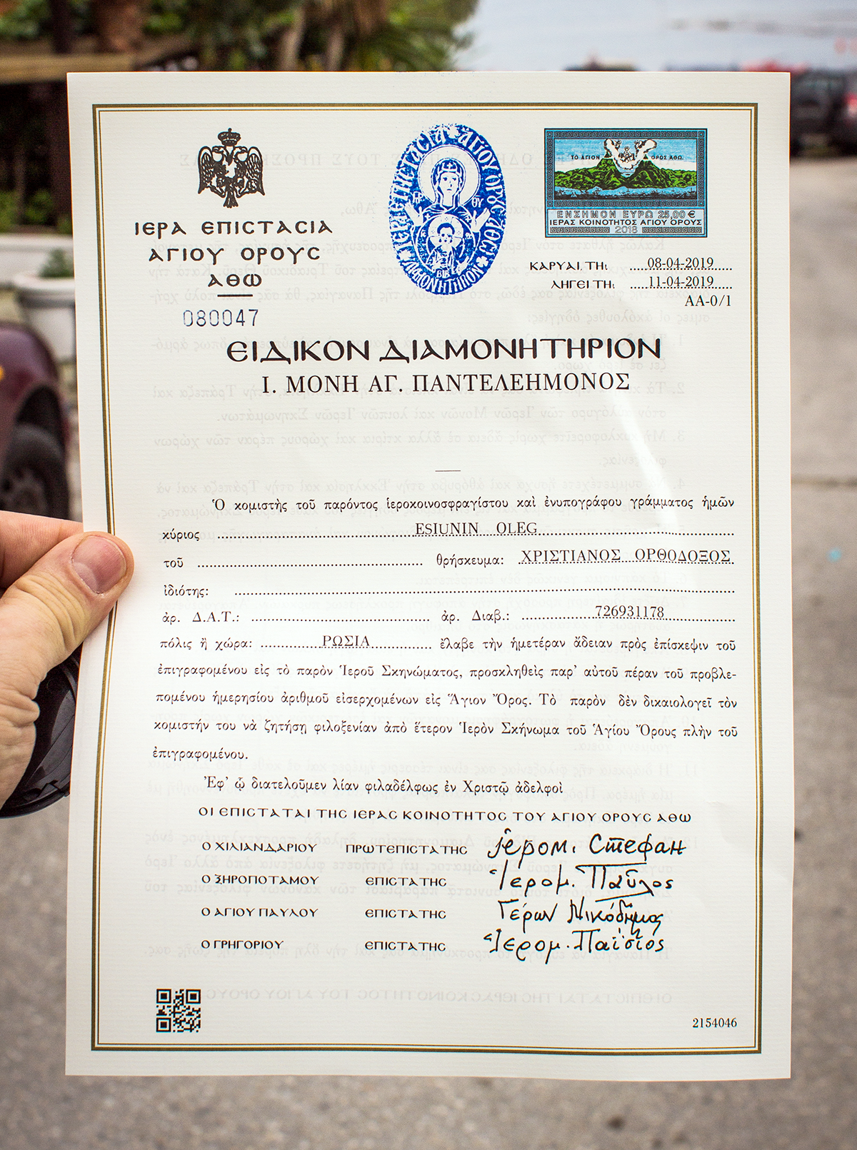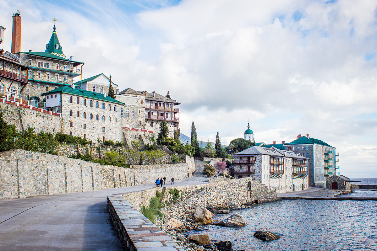 Поскольку я как раз оказался мужчиной любого вероисповедания и в тот момент кратковременно избегал соблазна, то получил пропуск и отплыл от пристани города Уранополиса в направлении монастыря Святого Пантелеимона. Несмотря на то что он занимает предпоследнее, 19-е место в официальной иерархии святогорских обителей, размещение здесь, наверное, самое комфортное. Не зря его посещал президент РФ Владимир Путин в 2005 и 2016 годах.