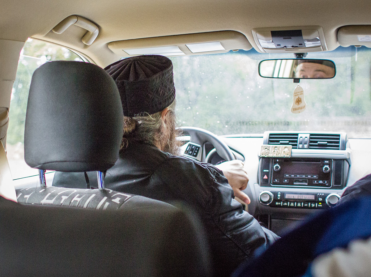 Мы знали, что еды после четырёхчасовой молитвы ждать неоткуда. Но случилось чудо: нас пригласил на трапезу сам настоятель монастыря архимандрит Евлогий, в миру — Михаил Николаевич Иванов. Игумен (духовный сан в православной церкви, руководитель монастыря) оказался простым и очень добрым человеком. Завтрак с ним утвердил меня в мысли, что соблюдать пост в Греции проще, чем, например, в Перми: орехи, халва, сухофрукты, фрукты и мёд. К слову, сам игумен к питанию не притронулся, но зато дал автомобиль, который повёз нас по Святой горе.