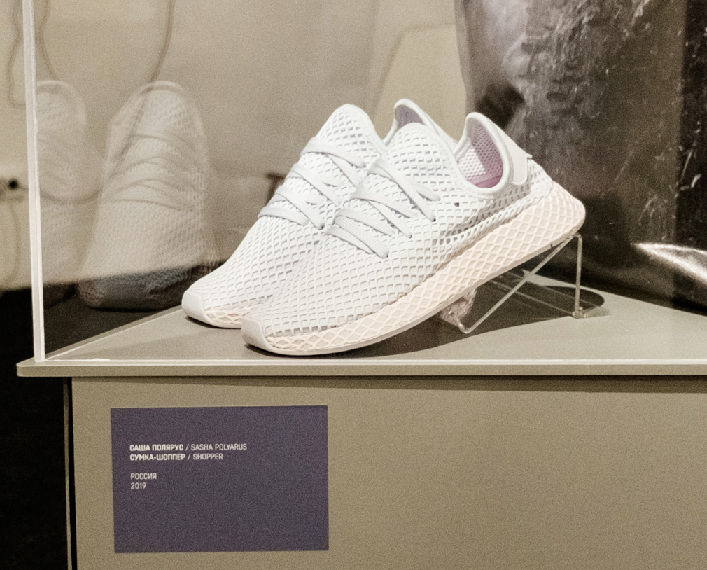 Одна из особо перспективных сфер утилизации пластика — это мода. Плащи из пакетов с фирменными логотипами торговых сетей, одежда, связанная из пластиковых нитей, — всё это, по выражению Александры Саньковой, «зверский модняк». Сама директриса Московского музея дизайна щеголяла на вернисаже с сумочкой из автопокрышки на поясе, а арт-директор PERMM Наиля Аллахвердиева вышла в ярко-розовых пластиковых кроссовках совместного производства Parley, Adidas и Стеллы Маккартни — наглядном доказательстве того, что пластиковым дизайном заинтересовались самые раскрученные бренды.