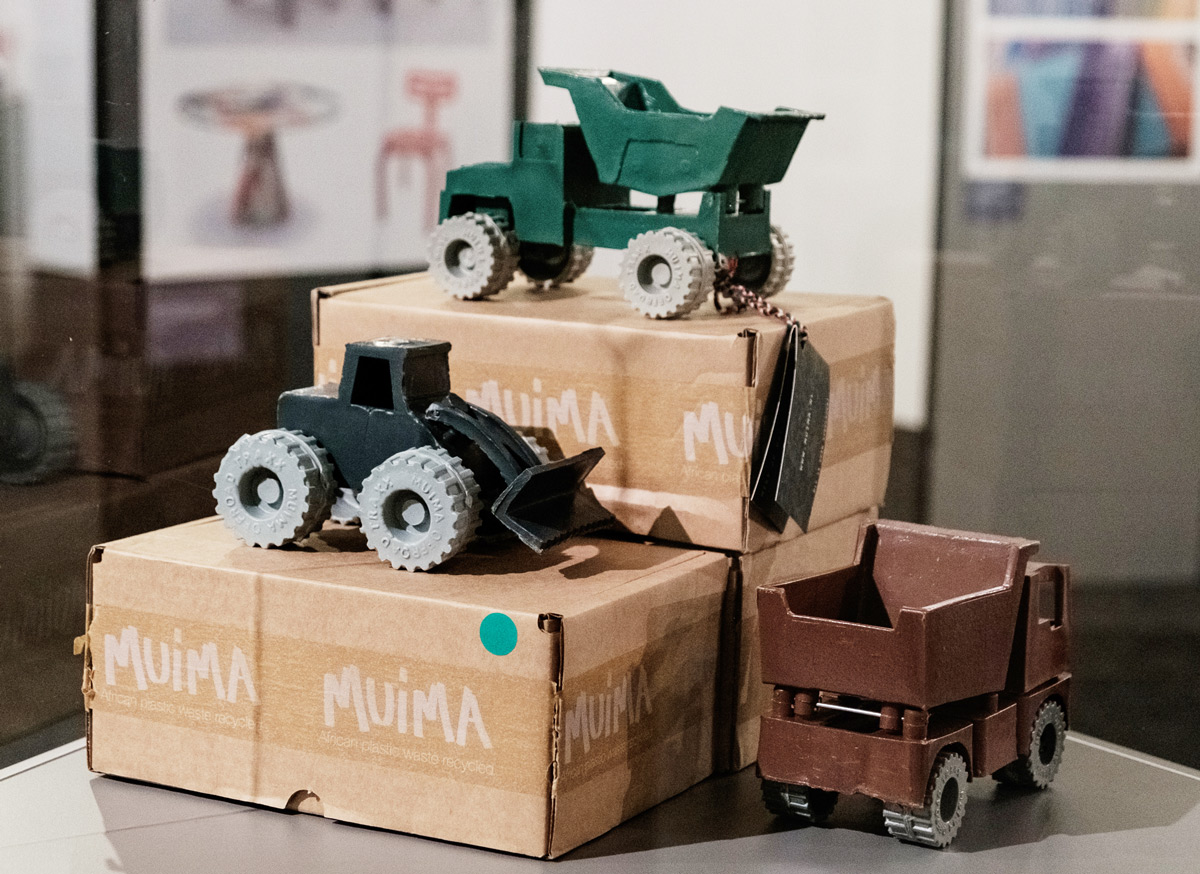 Что ж, дизайн как выставочная тема это позволяет, ведь он, в отличие от своего предшественника, декоративно-прикладного искусства, связан с промышленным производством, поэтому каждый из его предметов не несёт уникальности. К тому же в экспозиции всё же есть и подлинные предметы — например, прелестная бижутерия от Екатерины Лукьяновой, сделанная из пластиковых бутылок, или яркие сумки от нидерландской компании Engel — мирового лидера в переработке пластика. Кстати, голландских экспонатов на выставке около трети: эта страна особенно продвинулась в экологических технологиях.