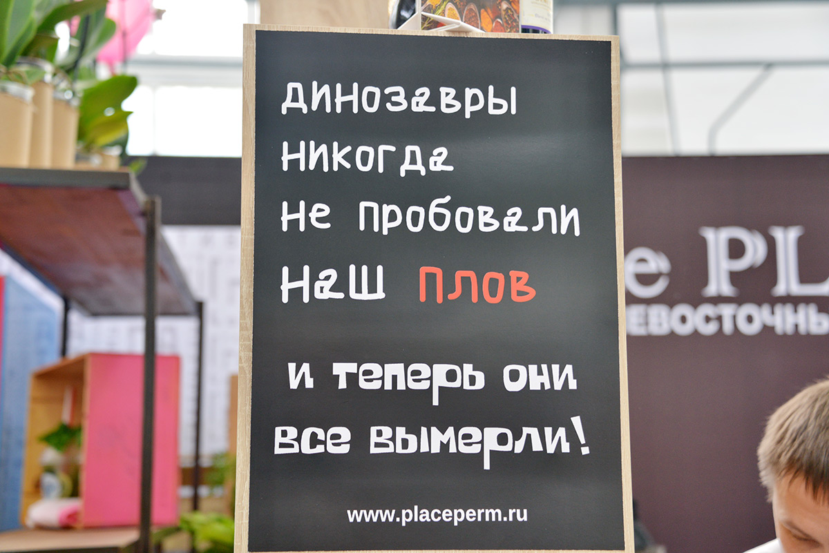 Стенды ресторанов и кафе радовали не только соблазнительными ароматами, но и оригинальным оформлением: можно было увидеть остроумные надписи вроде «Динозавры никогда не пробовали наш плов, и теперь они все вымерли», а рядом с прилавком с фермерским сыром паслись дружелюбные козочки.