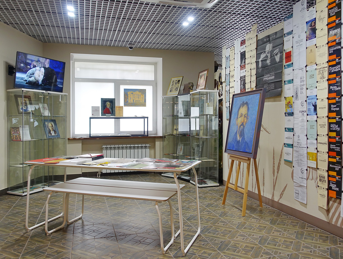 «Уникум» не был бы собой, если бы не сопроводил эту познавательную экспозицию произведениями искусства. Эмали Натальи Степановой — портреты великих драматургов и композиторов, где образы близки к каноничным и хрестоматийным, и здесь же — их фантазийные изображения: милый пухлый Гоголь работы Михаила Павлюкевича, карикатура Николая Радлова «Русская классика убегает от Мейерхольда», туманный, грустный Чехов Константина Николаева.