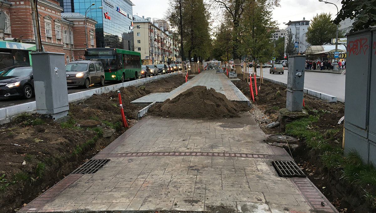 В качестве примера он привёл благоустройство набережной, которое, по его словам, предполагает снос 700 деревьев. Вместо них будет высажено всего 100. Аналогичная ситуация возникла при реконструкции ул. Революции от ул. Сибирской до Компроса, где на одной стороне улицы снесены почти все деревья, которые там были. И очевидно, что компенсации не будет, потому что на месте деревьев уже уложена плитка. Третий пример — реконструкция участка ул. Швецова (от Компроса до ул. Газеты «Звезда»). Вместо 26 снесённых деревьев там предлагается высадить семь. Всё это означает, что компенсируют снос таким количеством деревьев, которое указано в проекте. Никакого восстановления, по мнению Андреева, точно не происходит.