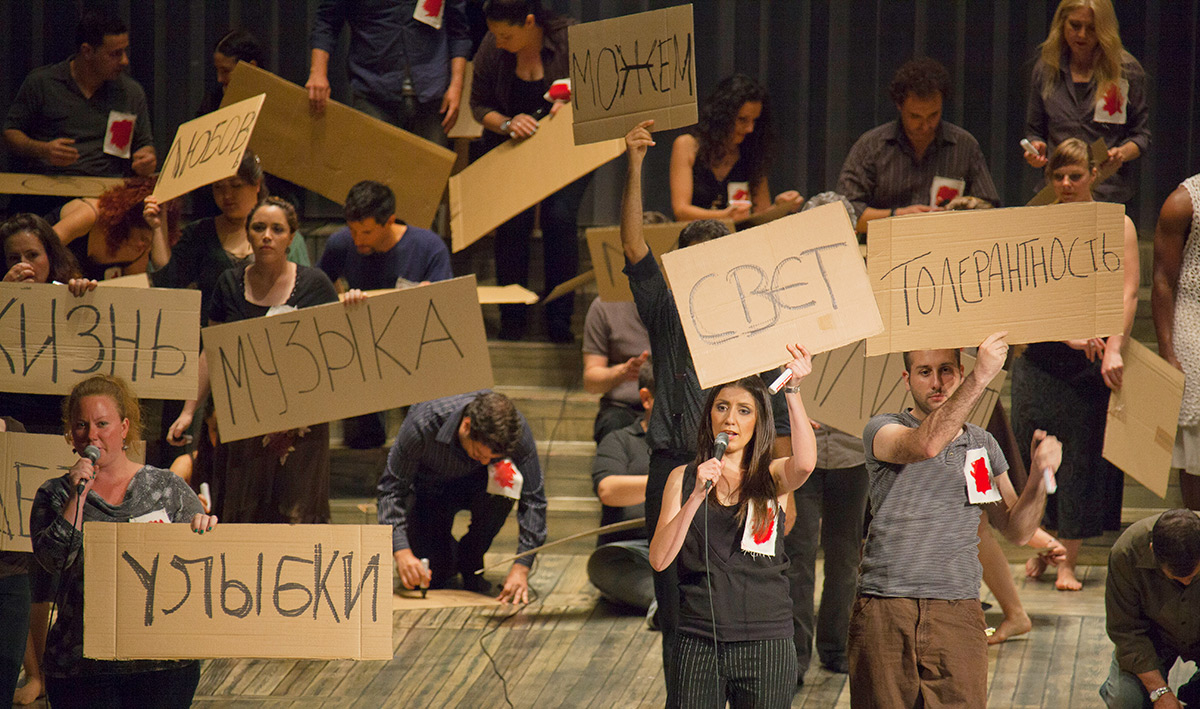 Когда хор «мертвецов» запел, лёжа на спине, то есть в такой позе, где не то что петь — дышать трудно, поначалу казалось, что музыка доносится откуда-то из-за кулис, или с балконов, или вообще отовсюду: звук такой однородный и в то же время сложный, что казалось, будто он живёт в воздухе и обволакивает тебя многочисленными слоями».