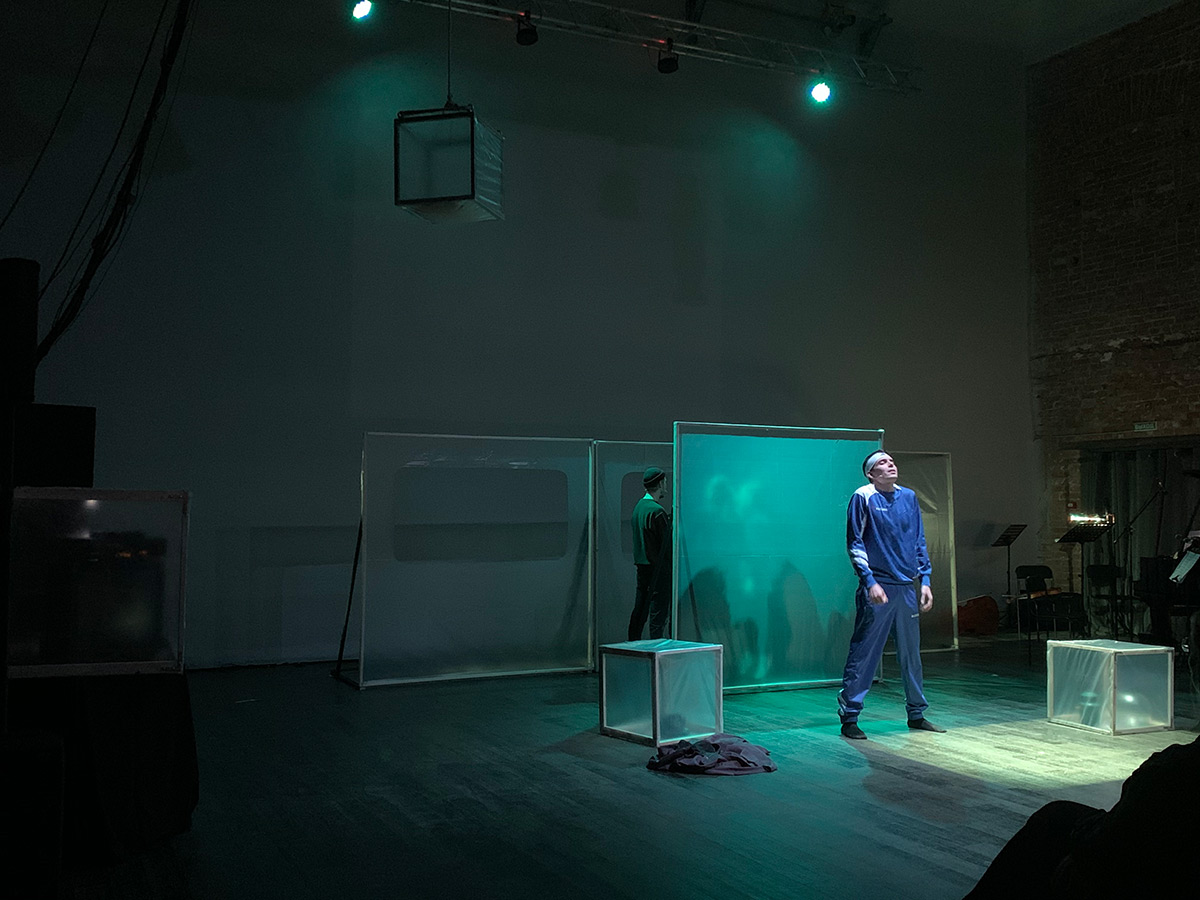 Авторская группа перформанса «Память», к которой кроме режиссёра Евгения Мезенцева можно причислить и музыкантов оркестра Театра оперы и балета (Даниил Мякишев — скрипка, Роман Ефимов — виолончель, Кристина Басюл — фортепиано, Ирина Марцинкевич — флейта, музыкальная редакция, Артём Наумов — саунд-дизайн), постаралась сделать равнозначными текст московского драматурга Юлии Поспеловой, чья монопьеса «Лёха» стала основой спектакля, и музыку Вайнберга. Получилось ли это — вопрос сложный.