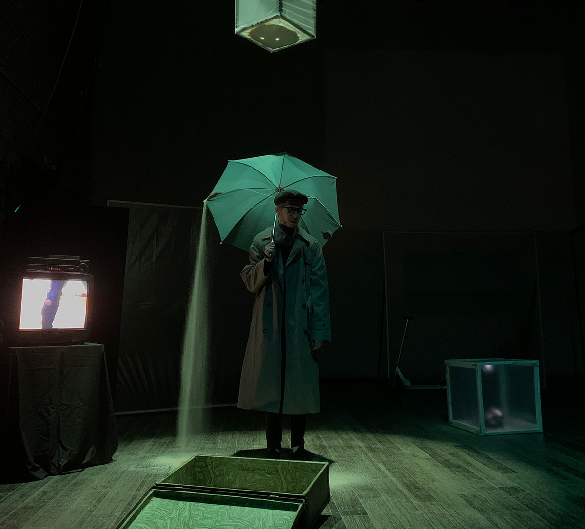 В этой постановке много интересных режиссёрских находок. Так, в финале герой протыкает зонтиком висящие над ним полупрозрачные полиэтиленовые кубы, и из отверстий сыплется песок — натуральный песок времени, как в песочных часах. Шуршит тихонечко, и возникает чувственный образ проносящихся секунд. Герой раскрывает зонтик, словно пытается спастись от хода времени, — и сразу становится старше, как будто он — уже не он, а воплощение его деда.