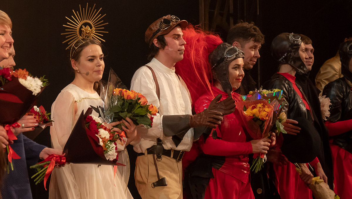 «Летучий корабль» поставлен Дамиром Салимзяновым — художественным руководителем театра «Парафраз» из Глазова, но при этом почти пермяком, хорошо известным местным театралам и как драматург, и как режиссёр спектаклей «Сцены-Молот». Салимзянов — режиссёр изобретательный и остроумный, и это в полной мере проявилось в новой работе.