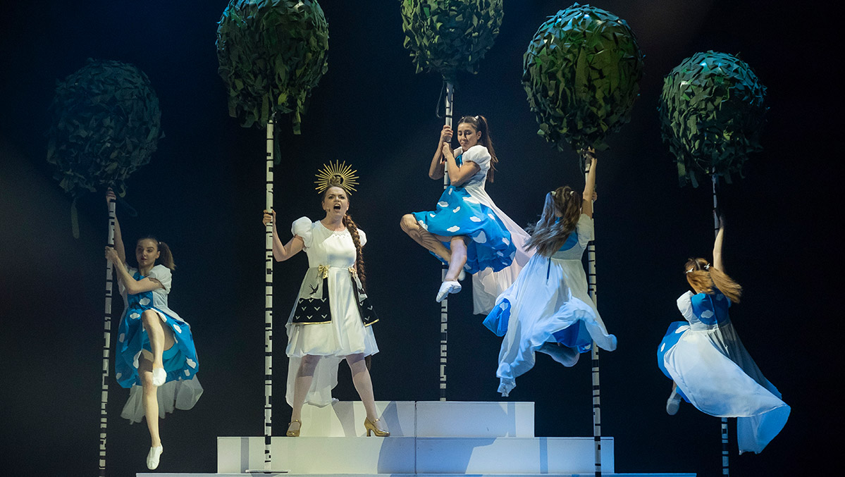 Откровенно говоря, совсем уйти от образов, навязанных выдающимся мультфильмом Гарри Бардина, постановщикам не удалось: пузатый Водяной отличается от себя же рисованного лишь гребнем на спине и блескучестью, а гигантское булькающее пузо и цилиндр — прямо из мультфильма. Зато какие у него бэк-вокал из лягушек и подтанцовка из пиявок! Отдельное шоу!