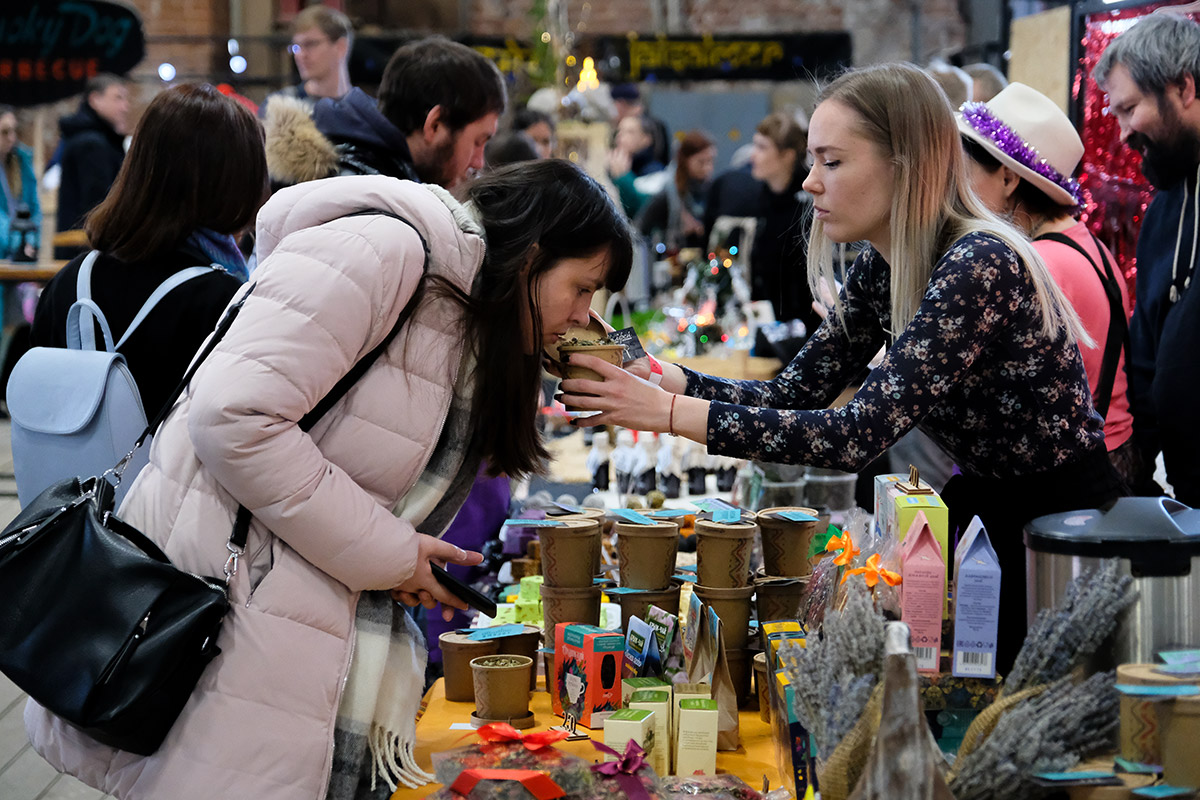 Портрет среднестатистического потребителя товаров Red Market было легко составить, пробежав глазами программу и бегло оглядев ассортимент аккуратных прилавков. Молодые, образованные, достаточно хорошо обеспеченные и стильные люди с богатым визуальным бэкграундом. Не обладая этими характеристиками, просто невозможно оценить дизайнерские украшения из стали, нарядные платья не заводского покроя и футболки с ироничными принтами (помните лицо Кевина из фильма «Один дома» сразу после того, когда он протёр лицо лосьоном после бритья?), мыло в деревянных коробочках… И куда же без сугубо новогоднего ассортимента: ароматических свечей, вкусного травяного чая, экосладостей, фермерского сыра и винтажных ёлочных игрушек?