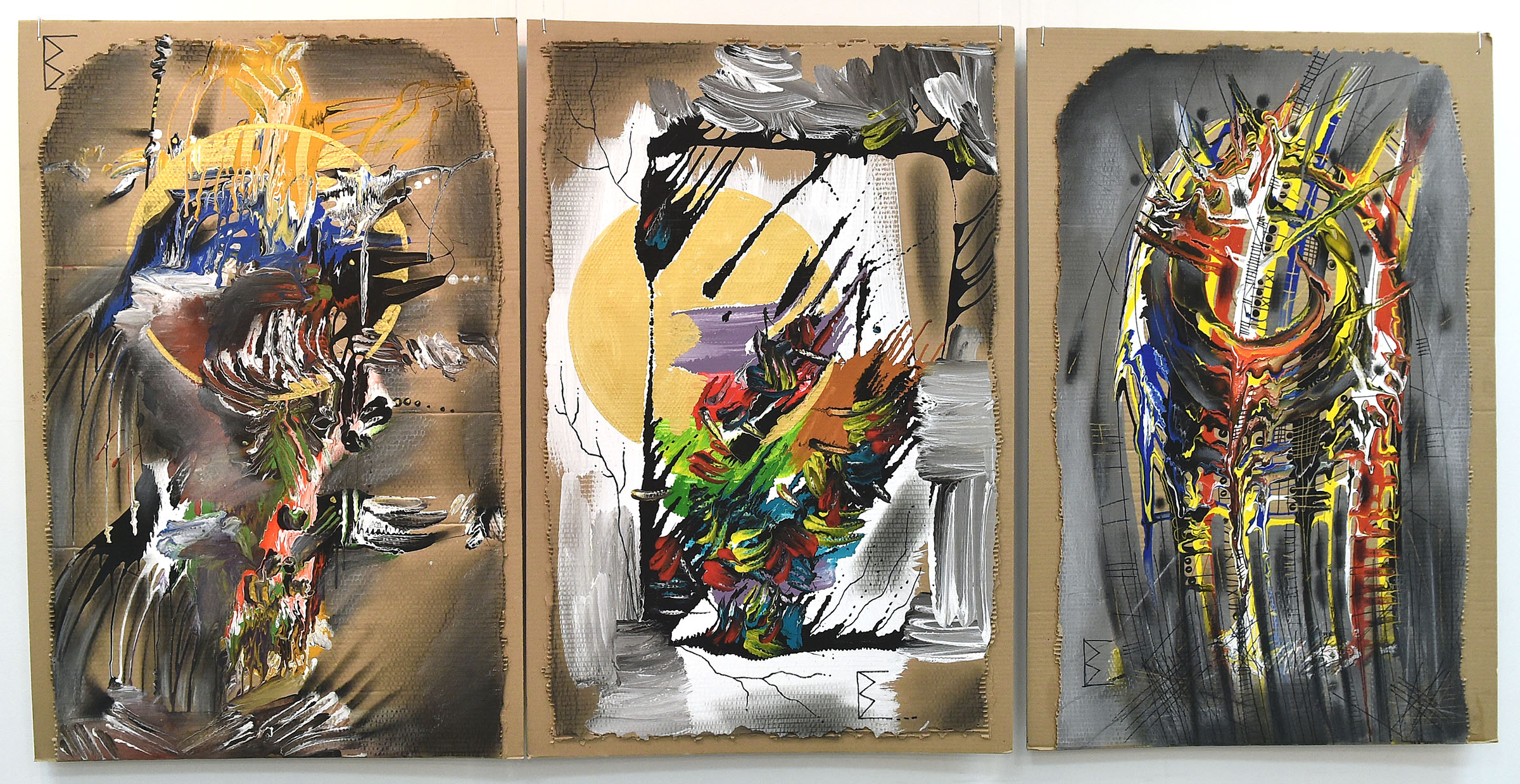 Картон для нынешней выставки ему подарила Пермская ЦБК. Художник уверяет, что не просил помощи, «просто взяли и привезли 100 листов». Директор по продажам и развитию ПЦБК Андрей Гурьянов объясняет это решение тем, что предприятие захотело подарить новую жизнь этому материалу. По его словам, идеология ПЦБК — это экологическое производство: большая часть гофрокартона делается из вторичного сырья, то есть из макулатуры. Вторичное использование материала — это ещё один цикл, природный и человеческий, ещё одно понятие, вписывающееся в символику круга, в идеологию и философию XXI века.