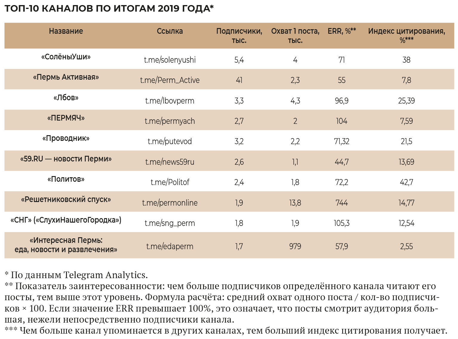 В-пятых, практически все СМИ завели себе такой канал донесения информации до аудитории. «Особого роста посещаемости не заметил, — говорит главный редактор «Коммерсантъ-Прикамье» Вячеслав Суханов. — Если есть, то не считывается. Я завёл для удобства читателей: кому-то удобно новости читать в телеге. Стараюсь не валить туда весь массив, выбираю самое острое и эксклюзивное». Напротив, по отзывам одного из собеседников, как только «Коммерсантъ-Прикамье» завёл телеграм-канал, он стал реже заходить к ним на сайт (хотя раньше исправно мониторил): «Всё самое важное я увижу в телеграме».
