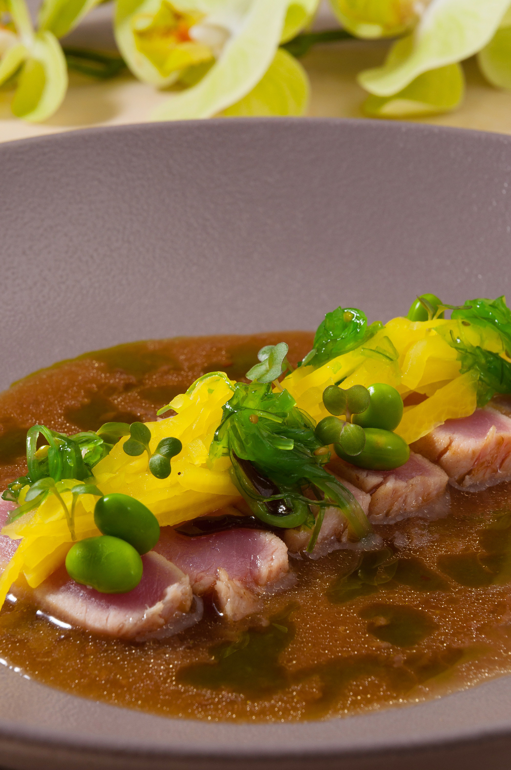 Если вы обнаружили в своей тарелке мох — это совершенно не обязательно говорит о возрасте продуктов. И уж тем более повар ресторана Les Marсhes в Перми не хочет доказать посетителям, что они олени, — просто именно лесной мох (ну с виду — точно он) является частью композиции местной версии «татаки с тунцом».