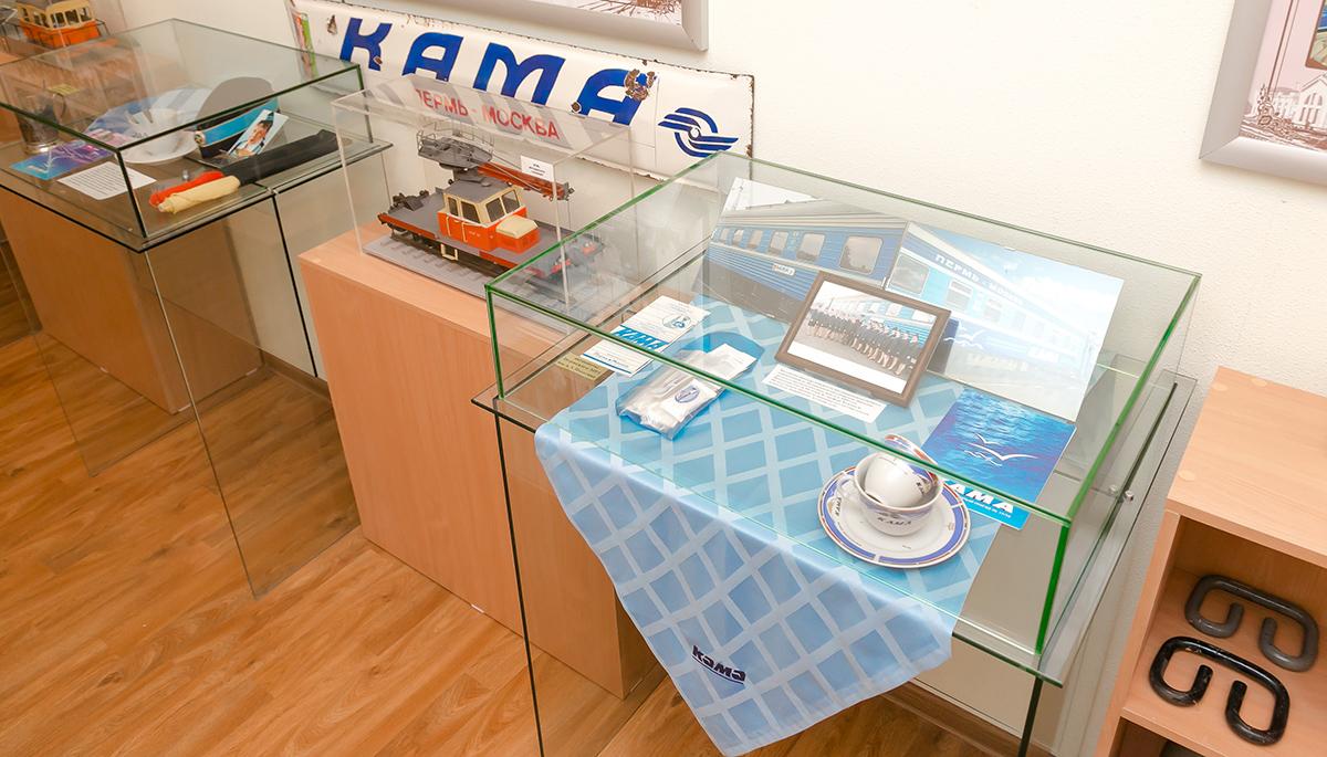 С каждым годом музейная экспозиция дополняется, и дополняется существенно. Музей становится всё более и более мемориальным и ностальгическим. Вот — стенд, посвящённый знаменитому фирменному поезду «Кама». Фотографии, таблички с названием поезда, которые когда-то украшали голубые вагоны, «фирменные» чайные пары, дорожные наборы, форма проводника... Все любили ездить на «Каме», она была, кроме шуток, лучшим из поездов, на котором можно было доехать от Перми до Москвы! Будет ли ещё когда-нибудь «свой» поезд у пермяков?