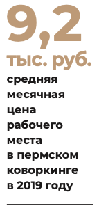 По данным аналитиков «Авито Недвижимость», которые по итогам 2019 года провели исследование рынка коворкингов в крупнейших городах России, за год арендная ставка в Перми выросла на 43% и достигла среднего показателя в 9,2 тыс. руб. за рабочее место.