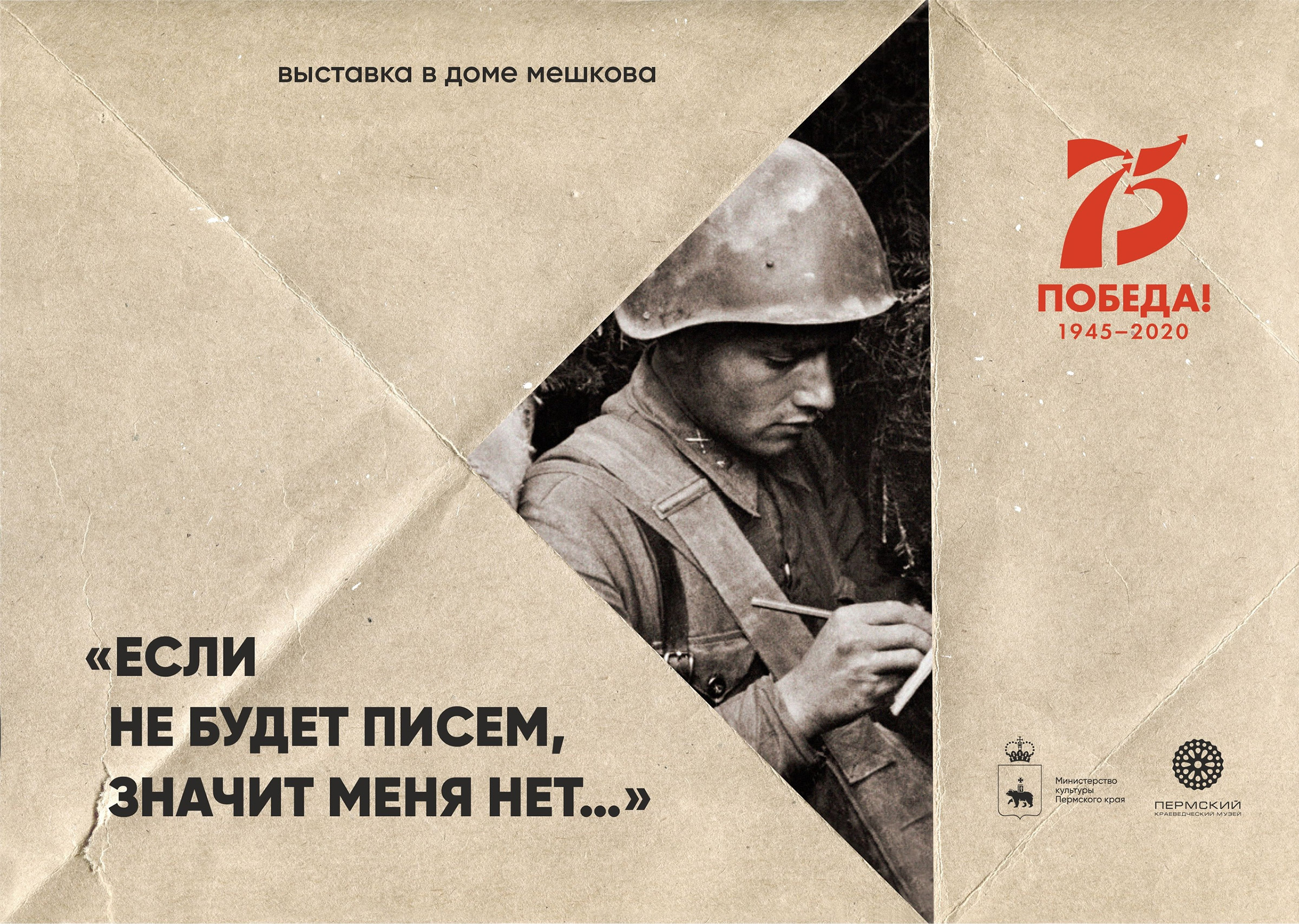Дом Мешкова готовит выставку «Если не будет писем, значит, меня нет... Письма 1941-1945 гг.» (12+). Во многих личных фондах участников войны — жителей нашего края хранятся письма с фронта, приходившие на протяжении нескольких лет. Они позволяют проследить боевой путь автора от начала войны и до Победы. Военные письма и дневники расскажут истории конкретных людей, передадут атмосферу эпохи. Сотрудники Дома Мешкова долго собирали эти драгоценные документы, и их уже сейчас можно увидеть на страницах Дома Мешкова в соцсетях.