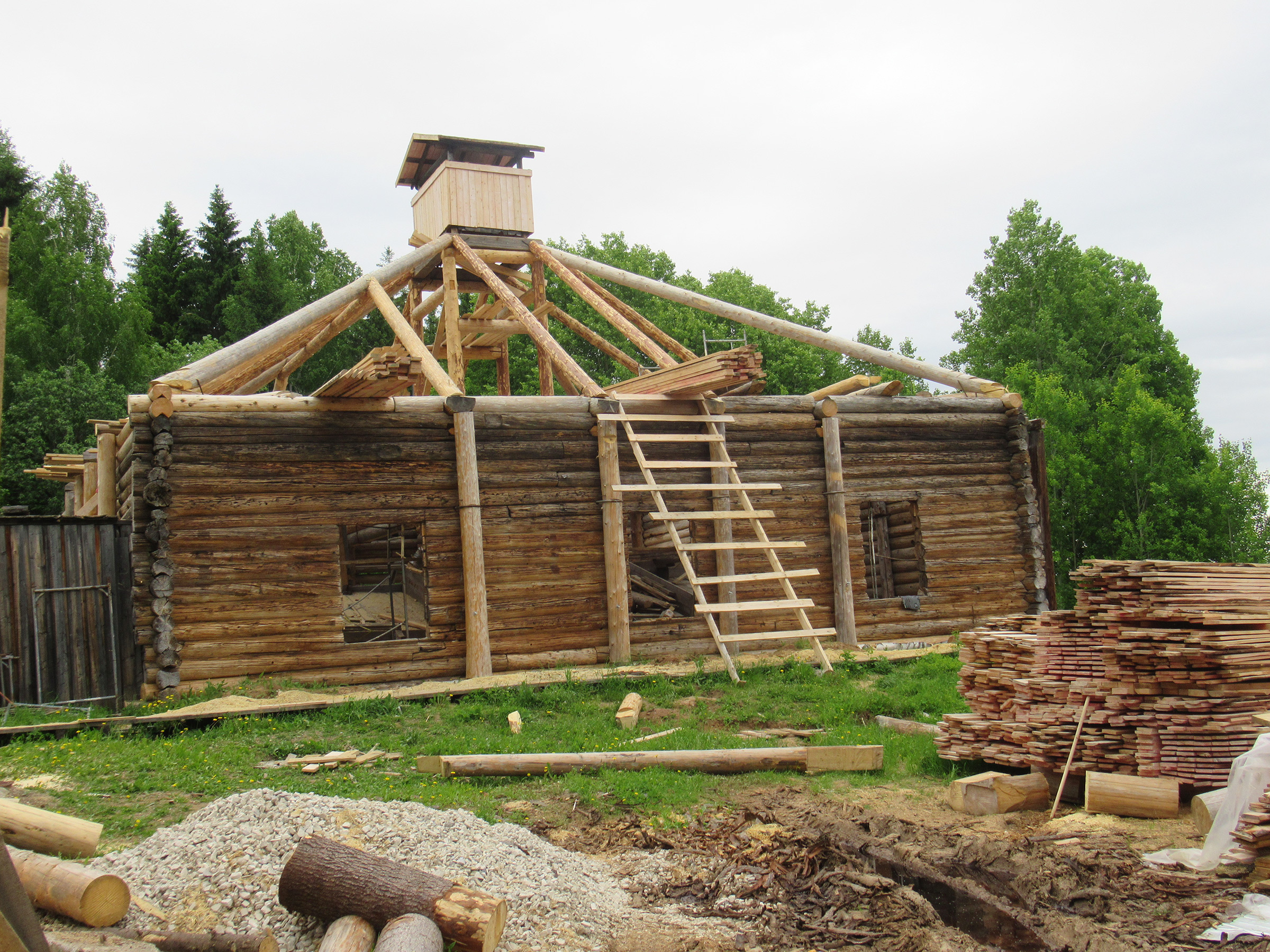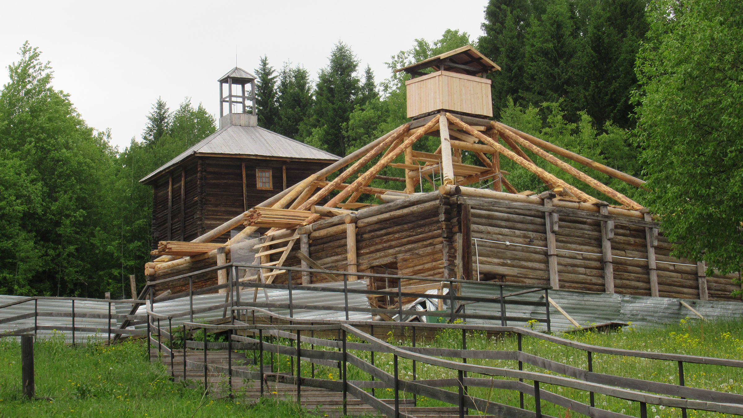 Начинается реставрация двух построек из Коми-пермяцкого сектора экспозиции. В керку (избе) Павла Ивановича Кудымова просело крыльцо: надо ремонтировать фундамент, а также менять сгнившие венцы и кровлю. Используются только те материалы, которые применялись изначально при постройке: так, в качестве гидроизоляции в двухслойной кровле будет размещена береста. Именно так поступали коми-пермяцкие крестьяне, а вот реставраторы до сих пор берестой не пользовались.