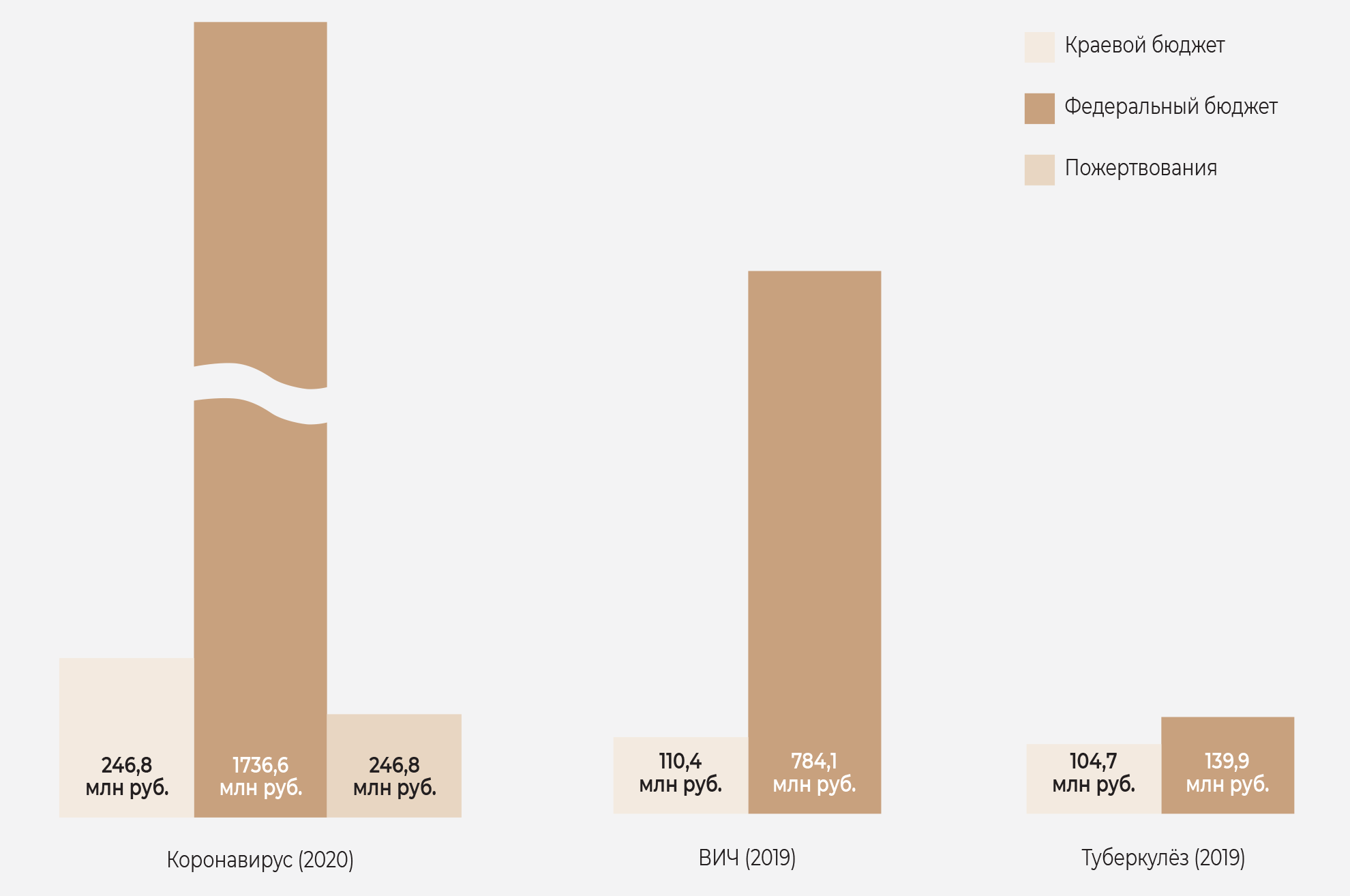 «Новый компаньон» решил сравнить объём средств, заложенных в 2020 году на борьбу с коронавирусом, с расходами на борьбу с ВИЧ и туберкулёзом в 2019 году. Эти инфекционные болезни выбраны в качестве противопоставления, потому что по ним показатель заболеваемости в Пермском крае выше, чем в среднем по России. Оказалось, что на борьбу с ВИЧ в 2019 году потратили в 2,3 раза меньше, чем в этом году уже заложили на борьбу с коронавирусом. В ситуации с туберкулёзом разрыв ещё больше — в 8,7 раза.