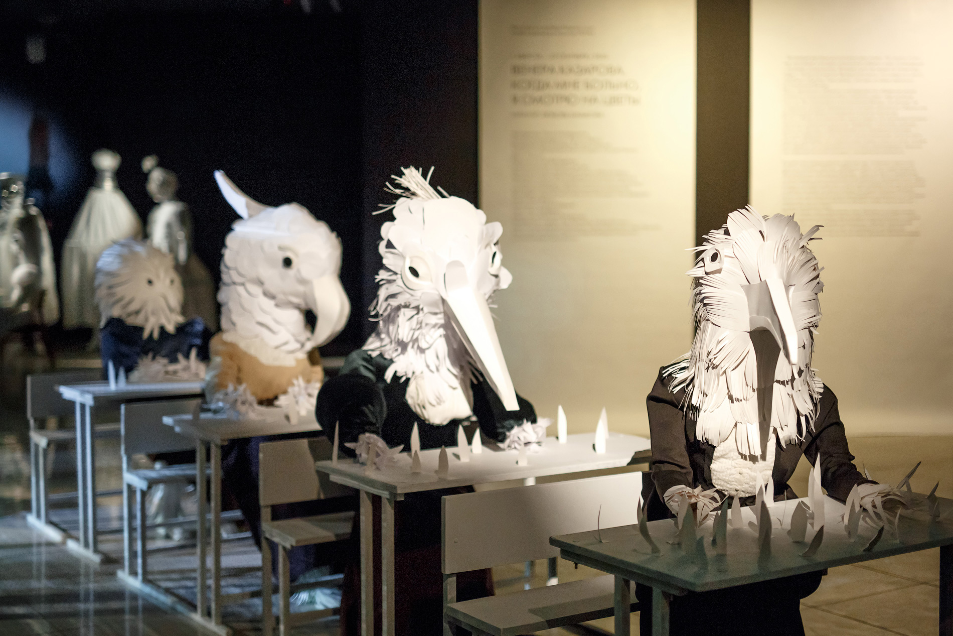 Венера Казарова признаётся, что не чувствует себя в стане «современных художников»; по образованию она дизайнер одежды; сфера дизайна, оформления ей гораздо ближе, а что касается визуальных искусств, то основной творческий опыт художницы — в сфере перформанса. Именно перформансы стали основой экспозиции первого этажа, где их персонажи превратились в арт-объекты, а главной деталью этих объектов стали причудливые, сложносочинённые костюмы.