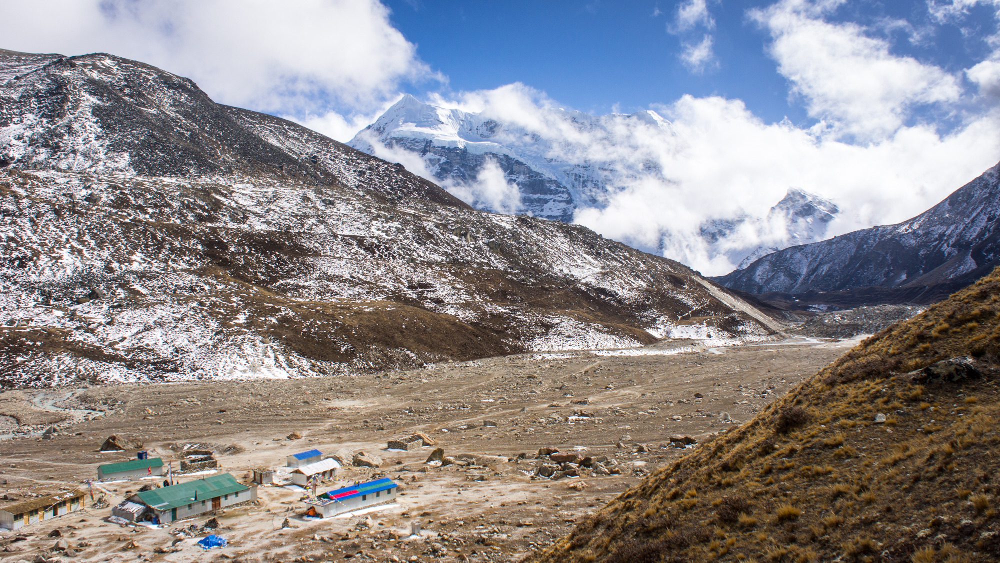 Нам повезло: всю дорогу нам сопутствовала облачность и осадки, прибытие в базовый лагерь ознаменовалось туманом с пролетающим колючим снегом, но на утро тучи развеялись и гора предстала во всей ослепительной красе. Бушующий на восьмикилометровой высоте ветер развернул над вершиной фантастический снежно-облачный флаг, а затем явил очередное чудо — лентикулярные облака, напоминающие то циклопических драконов, то воздушных китов, то волшебных медуз, но по большей части что-то совсем невообразимое. Чередование света и теней, постоянно меняющаяся облачность на фоне вздымающихся к небесам исполинских скал и сияющих ледников разыгрывают величественный спектакль, захватывающее зрелище, от которого невозможно оторвать взор. Эти минуты оправдывают тяготы и невзгоды пути, скудную еду и разрежённый воздух, к которому никак не привыкнут лёгкие. Гуляя в окрестностях лагеря, можно подняться на каменистые холмы, вершины которых украшены тибетскими молитвенными флажками лунгта, пройтись вдоль берега озера и допрыгать, борясь с одышкой, по камням до небольшого острова. С запада над лагерем вздымаются длинные пологие террасы, подъём на которые несложен, но утомителен.
