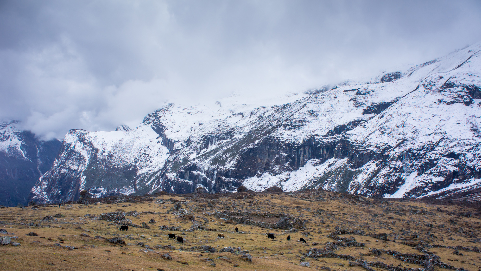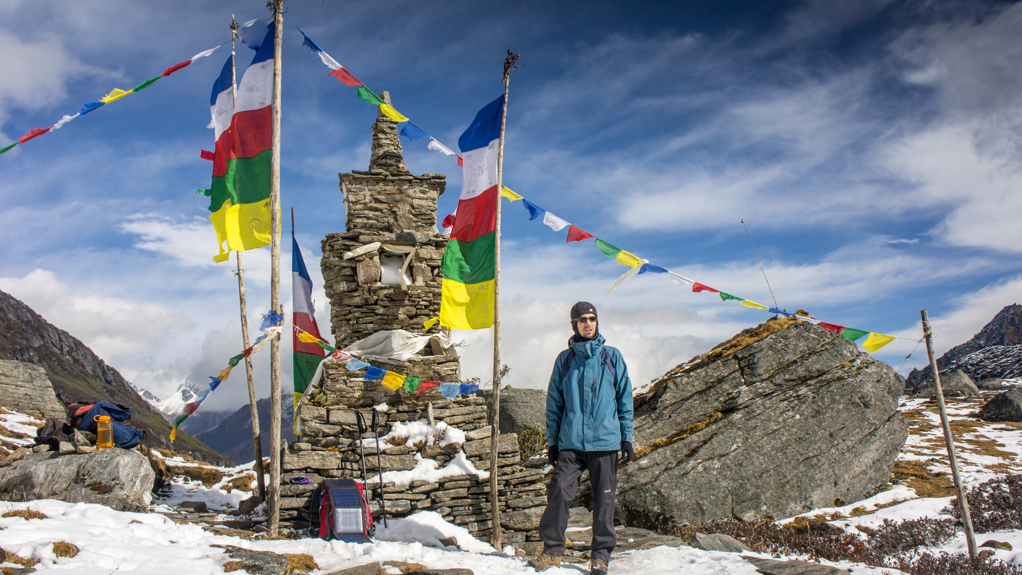 Высшая точка пути — Перевал Шиптона на высоте 4230 м над живописным горным озером Кало Покхари. Мы достигли его в сгущающейся тьме и сплошной облачности. Ночевали на чердаке чайного домика, прислушиваясь к шуршанию дождя по крыше. Ночью похолодало, дождь сменился снегопадом, который прекратился к утру. На рассвете мы обнаружили, что все окрестности покрывает свежевыпавший снег, начинающий таять под первыми лучами солнца. После перевала тропа спускается на дно ущелья, в котором течёт Барун, а затем ведёт вдоль реки всё выше, чтобы, преодолевая климатические пояса, достигнуть могучего моренного вала, за которым открываются альпийские луга и пастбища, а над ними нависают сверкающие ледники окрестных пиков.