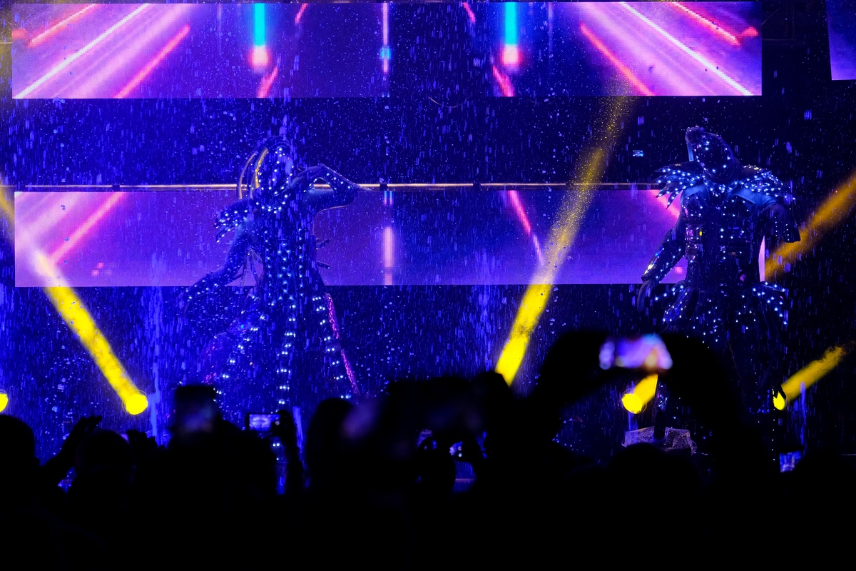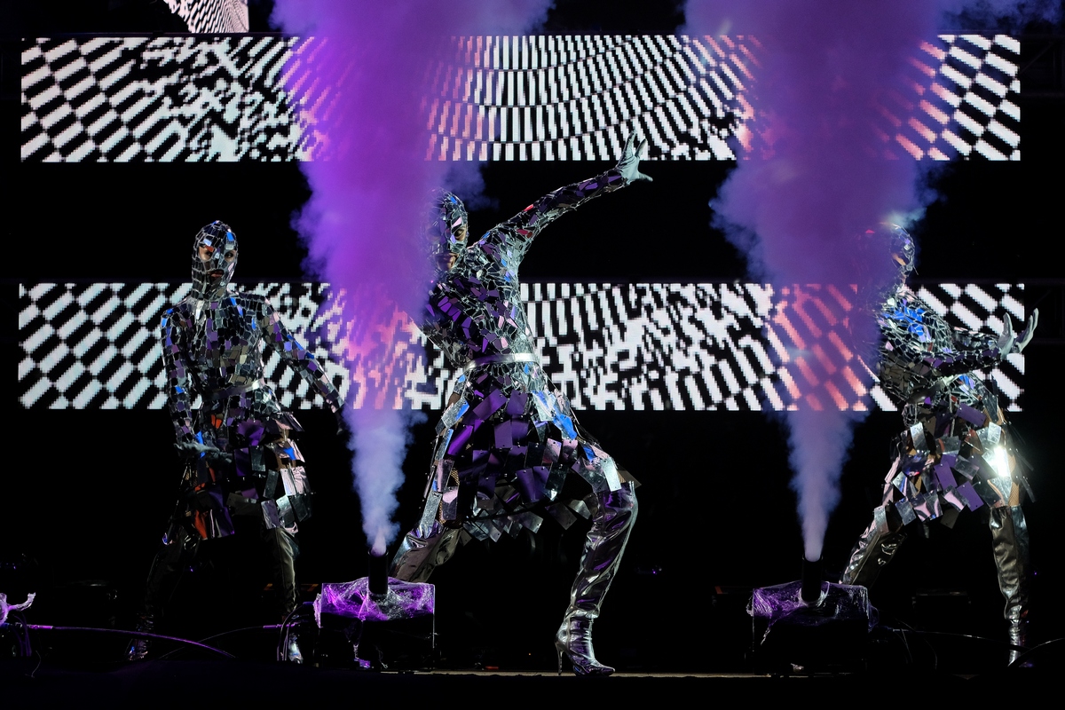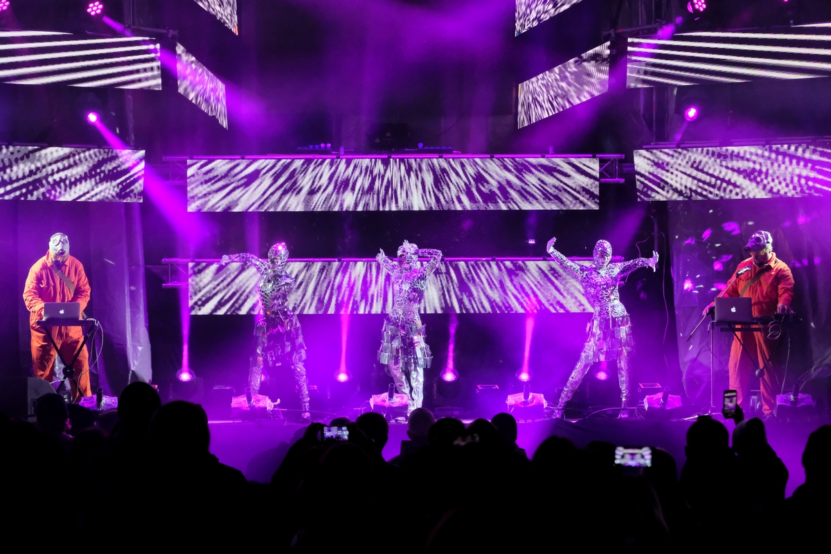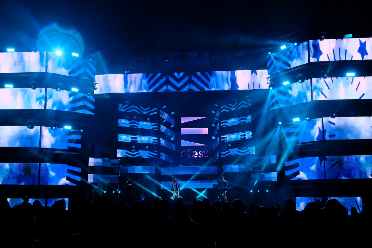 На сцене, обрамлённой 500 светодиодными экранами и пестрящей замысловатым виджеингом, энергично пританцовывали светящиеся фигуры (танцевальную поддержку фестивалю обеспечивали две команды: «Русский Hollywood» из Москвы и «Те самые» из Ярославля), приглашая последовать их примеру. Тинейджеров, компании стиляг среднего возраста, влюблённые парочки и даже целые семьи — в общем, всю разношёрстную публику, обутую в модные кроссовки всевозможных фасонов.