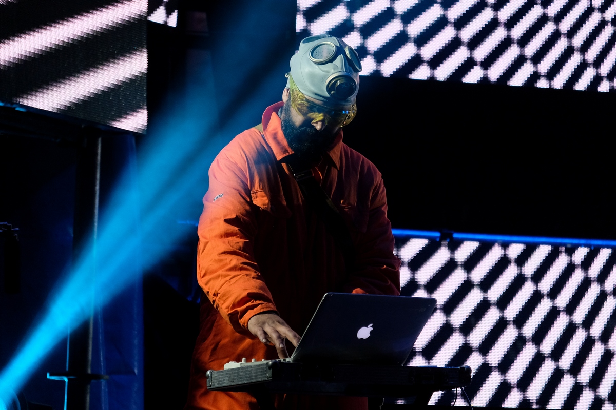 Привычнее было бы встретить на входе facecontrol. Но реальность диктует свои правила и учит жить по рекомендациям Роспотребнадзора: руки обработайте санитайзером, наденьте маски. Их любители электроники, следующие к сцене в темноте по недрам завода, снимали на ходу. С закрытой половиной лица неудобно танцевать. Всё это вовсе не казалось беспечностью, ведь формат openair обеспечивал безупречную вентиляцию, делая каждый вдох относительно безопасным.