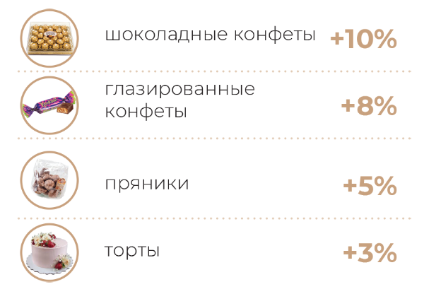 — Желание заглушить стресс в периоды кризисов побуждает потребителя к покупке сладкого. Ещё один фактор — желание себя побаловать. А поскольку люди потеряли возможность ходить в кафе, вполне логично, что за кусочком торта в период самоизоляции они пошли прежде всего в магазины.