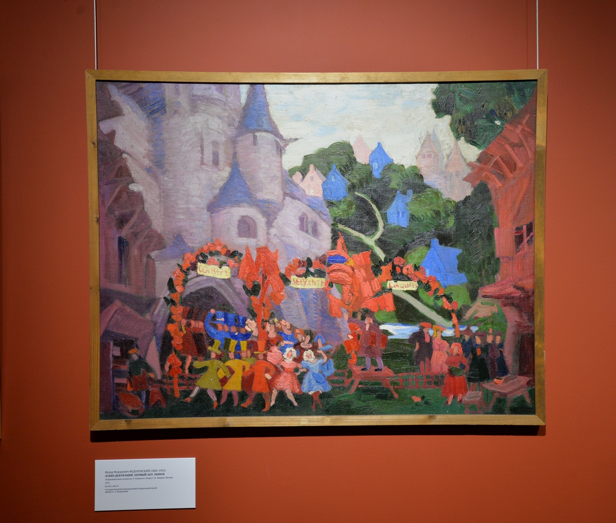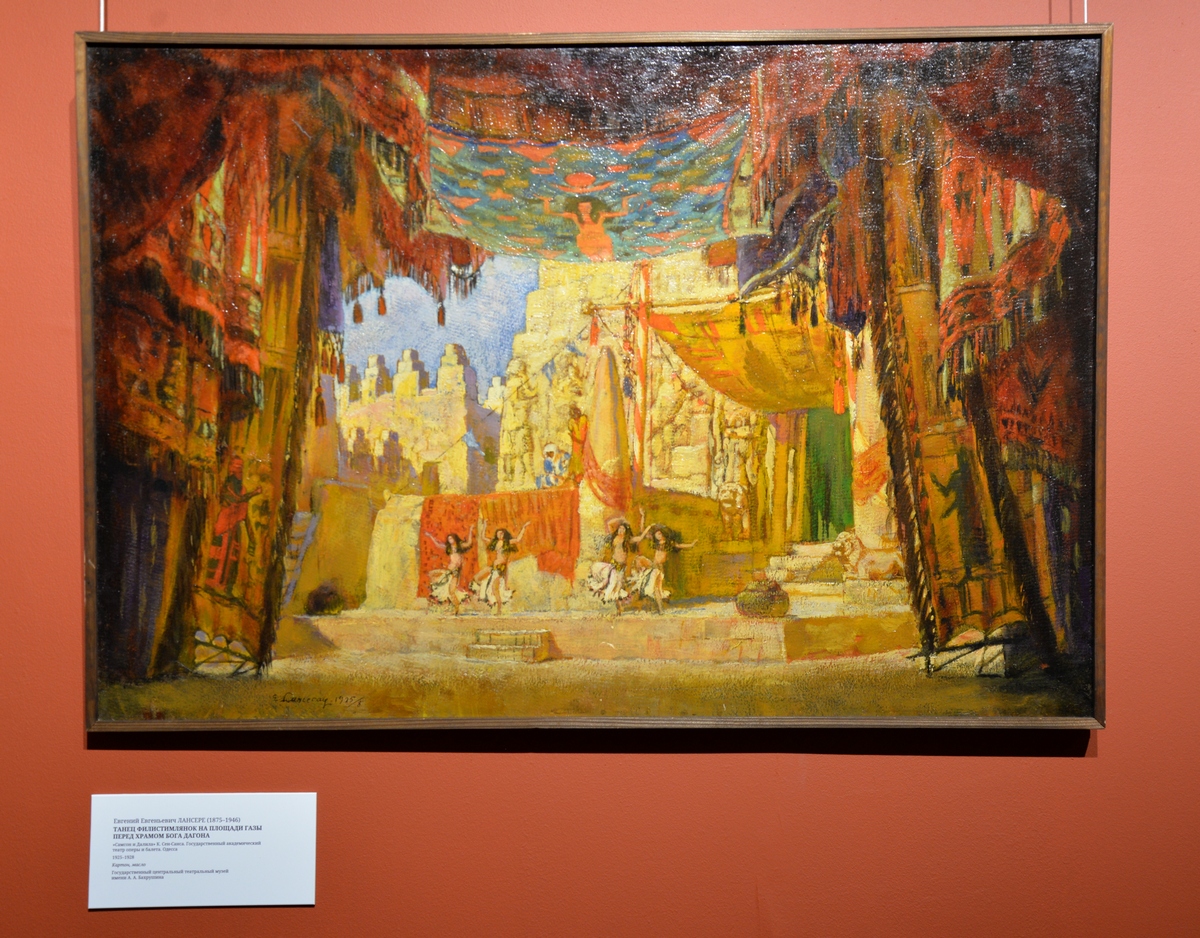 Самая яркая и завлекательная часть экспозиции — эскизы театральных декораций из коллекции Государственного Театрального музея им А. А. Бахрушина. Здесь все первые имена начала ХХ века: Кустодиев, Васнецов, Бенуа, Серов, Лансере, Петров-Водкин, Кончаловский, Коровин… Всё абсолютно рукотворное, существующее в единственном экземпляре, хранящее лёгкость авторской руки. А какие театры! От Мариинки до «Бродячей собаки» — в экспозиции есть эскизы Сергея Судейкина к стенным панелям в этом кабаре.