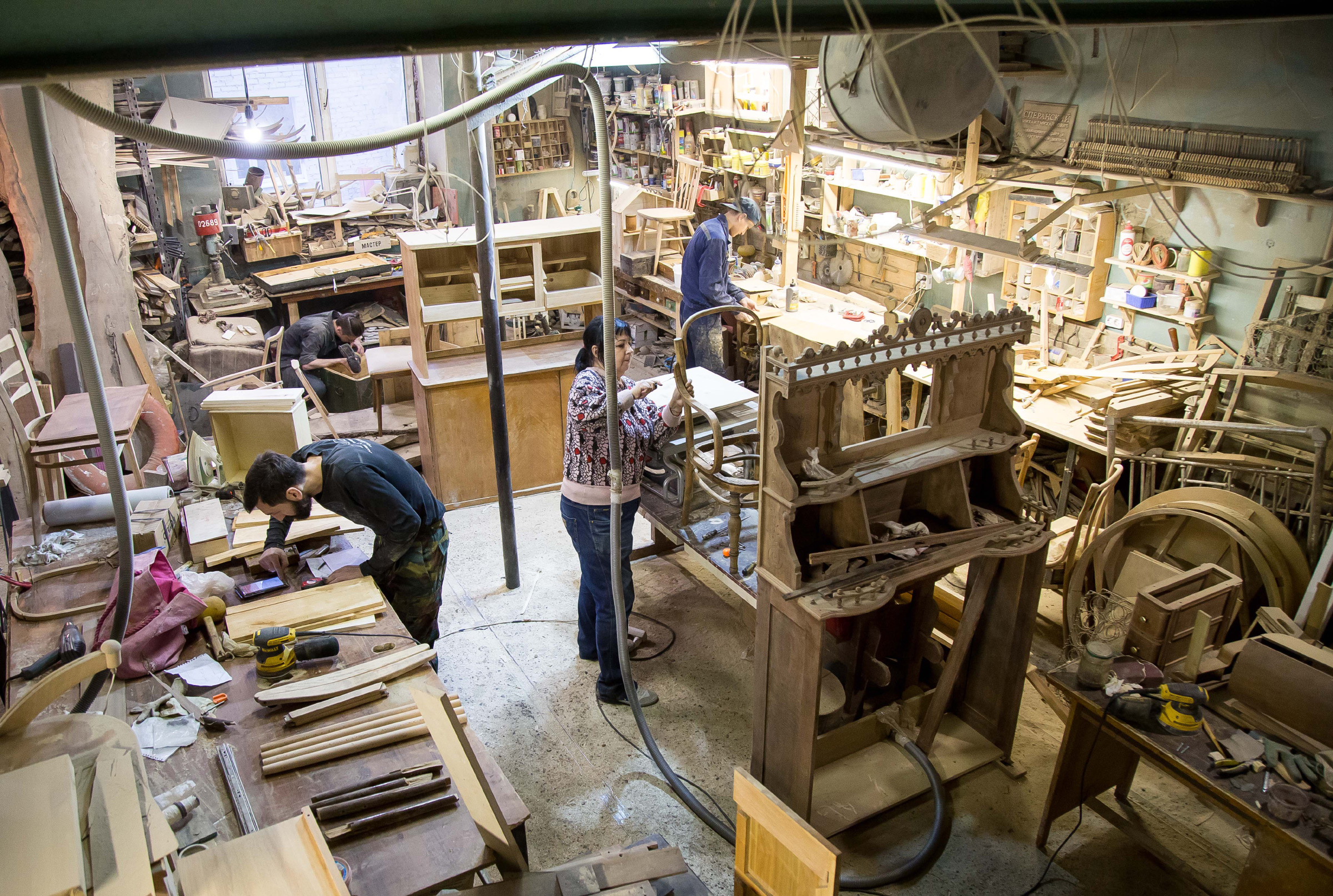 Таковых в мастерской действительно предостаточно. Если бы не шум и пыль, обычные для постоянно действующей столярной мастерской, это место можно было бы принять за музейный склад. Впрочем, с довольно хаотичной рубрикацией. Венские стулья с изящными спинками стоят здесь рядом со старинными детскими игрушками, деревенская прялка величаво возвышается над радиолой родом из 1950-х годов, компактный японский телевизор — напротив «дутого» холодильника середины прошлого века, который, кстати, принадлежал бабушке братьев Гилёвых. Они оба уверены, что каждой из этих вещей можно дать вторую жизнь.
