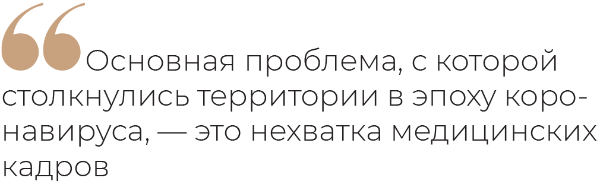 Основная проблема, с которой столкнулись территории в эпоху коронавируса, — это нехватка медицинских кадров. Кадровый дефицит в территориях был ещё до пандемии, а в связи с высокой заболеваемостью ОРВИ, пневмонией и коронавирусом нехватка медицинских работников стала острее.