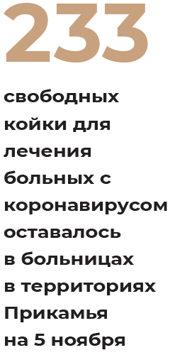В Министерстве здравоохранения Пермского края поясняют, что из 48 территорий Прикамья койки для приёма больных с коронавирусом развёрнуты только в 15: Осе, Краснокамске, Нытве, Чайковском, Октябрьском, Березниках, Соликамске, Лысьве, Кудымкаре, Губахе, Очёре, Чернушке, Кизеле, Гайнах и Пермском районе. Всего (помимо медучреждений Перми) 1332 койки. На утро 5 ноября свободными были 233 койки. В минздраве уверены, что этого резерва хватит, так как часть пациентов отправляют на лечение в Пермь.