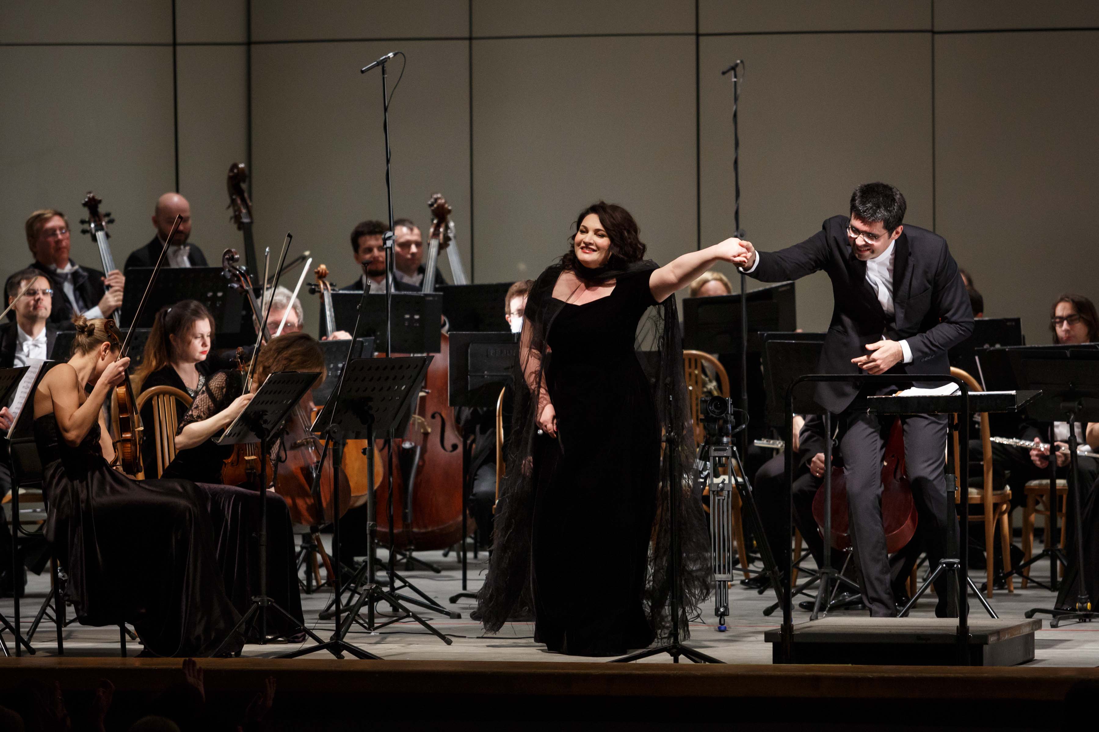 Всем солистам этого и следующего вечера несказанно повезло: их музыкальные интерпретации поддержал, развил и украсил один из лучших оркестров мира — Российский национальный оркестр (РНО). Он — из той категории оркестров, где каждый музыкант — личность, каждый — солист. Это особенно хорошо поняли зрители онлайн-трансляций концерта, ведь все концертные программы фестиваля шли в прямой трансляции не только на сайте филармонии, но в 25 виртуальных концертных залах Пермского края. Камеры профессиональных операторов филармонии привлекали внимание то к флейтисту, то к скрипачке… Особенно — к скрипачке. Татьяна Поршнева, концертмейстер оркестра, из тех музыкантов, которых камера любит. Она прекрасна и своим сценическим обликом, и каждым скрипичным соло.