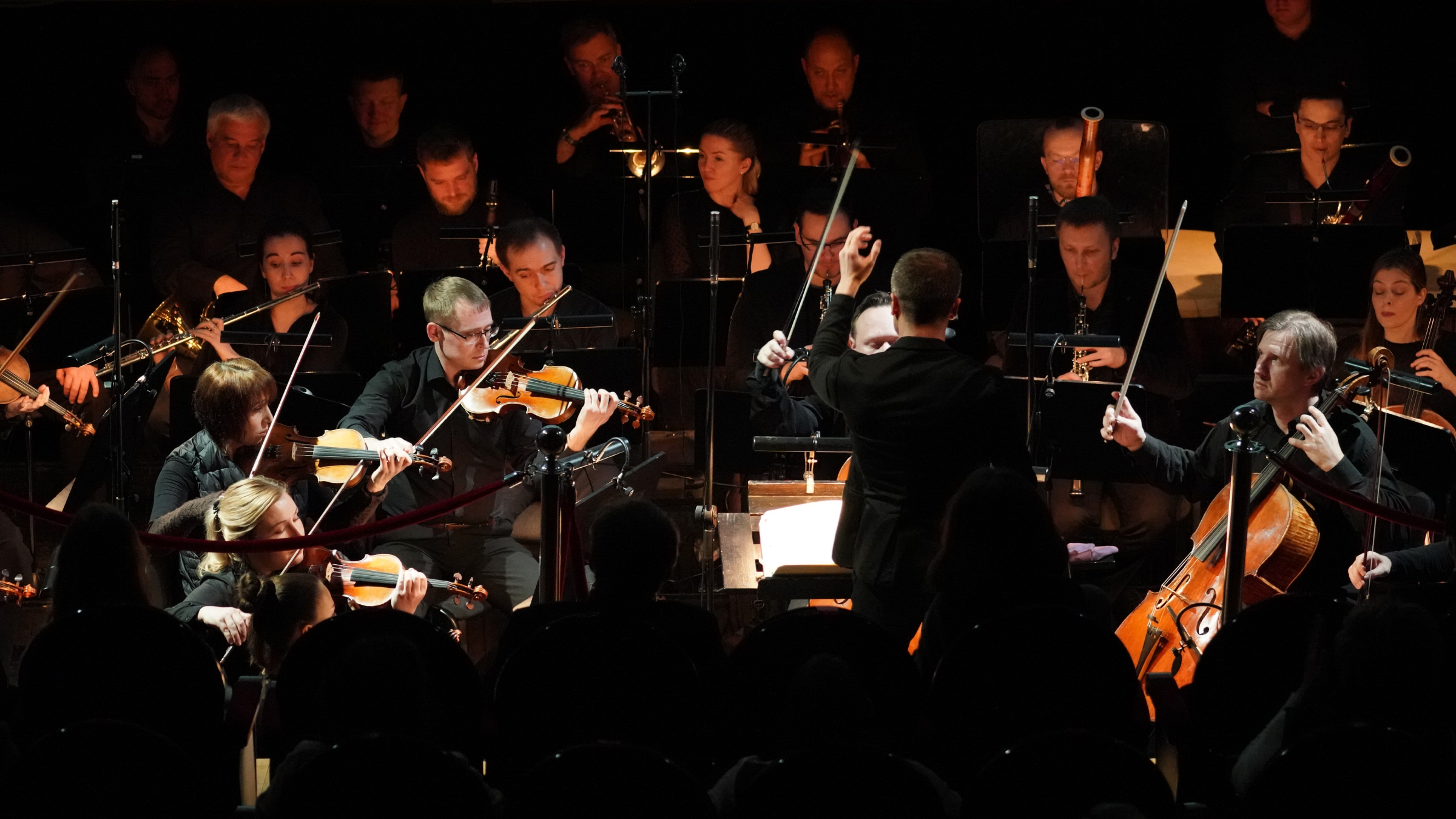 Важно, что актёры во время трансляции не где-то за сценой, за кадром; они здесь, они поют перед зрителями. Пространство оркестровой ямы претерпело важные изменения: её пол приподняли, а барьер между ней и залом демонтировали, так что всё, что происходит в оркестре, стало ближе к зрителю и таким образом превратилось в часть сценического действия. Единство сцены, оркестра и зала подчёркивается эффектным проходом Артёма Абашева через зал перед началом спектакля и второго действия; дирижёр раскланивается, стоя перед первым рядом, и легко спрыгивает в неглубокую оркестровую… не яму даже, а просто углубление.