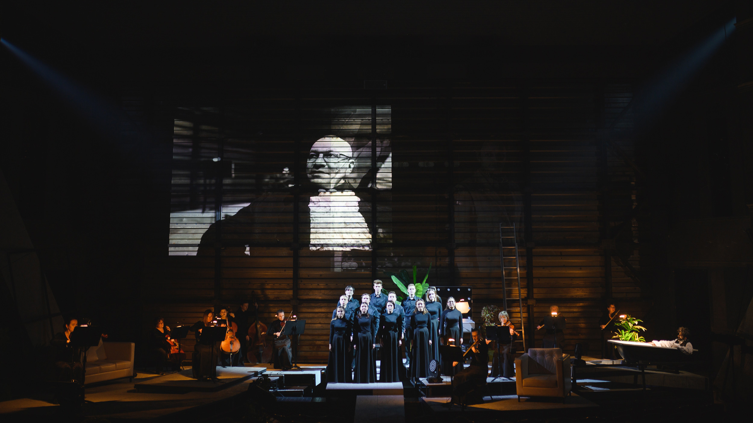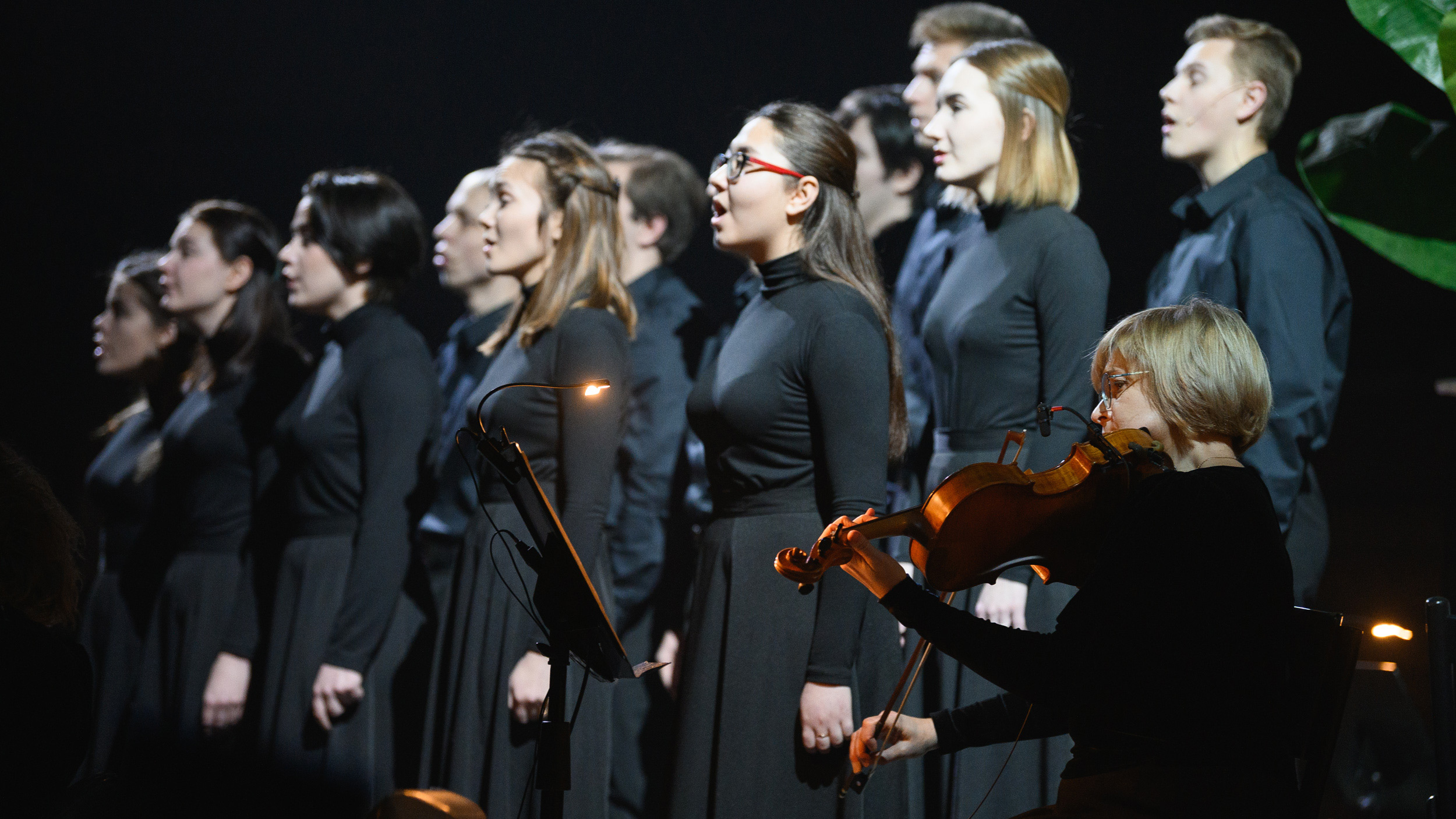 Хор Kama Cantabile под руководством Ларисы Юрковой изумительно музыкально выпевает почти церковные гармонии, на которые положен текст, предложенный композитором и состоящий из заголовков пьес Островского — тех, для которых драматург позаимствовал формулировки из «народной мудрости». Поговорки, будто специально, гармонируют с действием: «Не всё коту масленица», «В чужом пиру похмелье», «Не было ни гроша, да вдруг алтын» и прочие звучат удивительно уместно, словно иллюстрации к тому, что происходит на сцене.