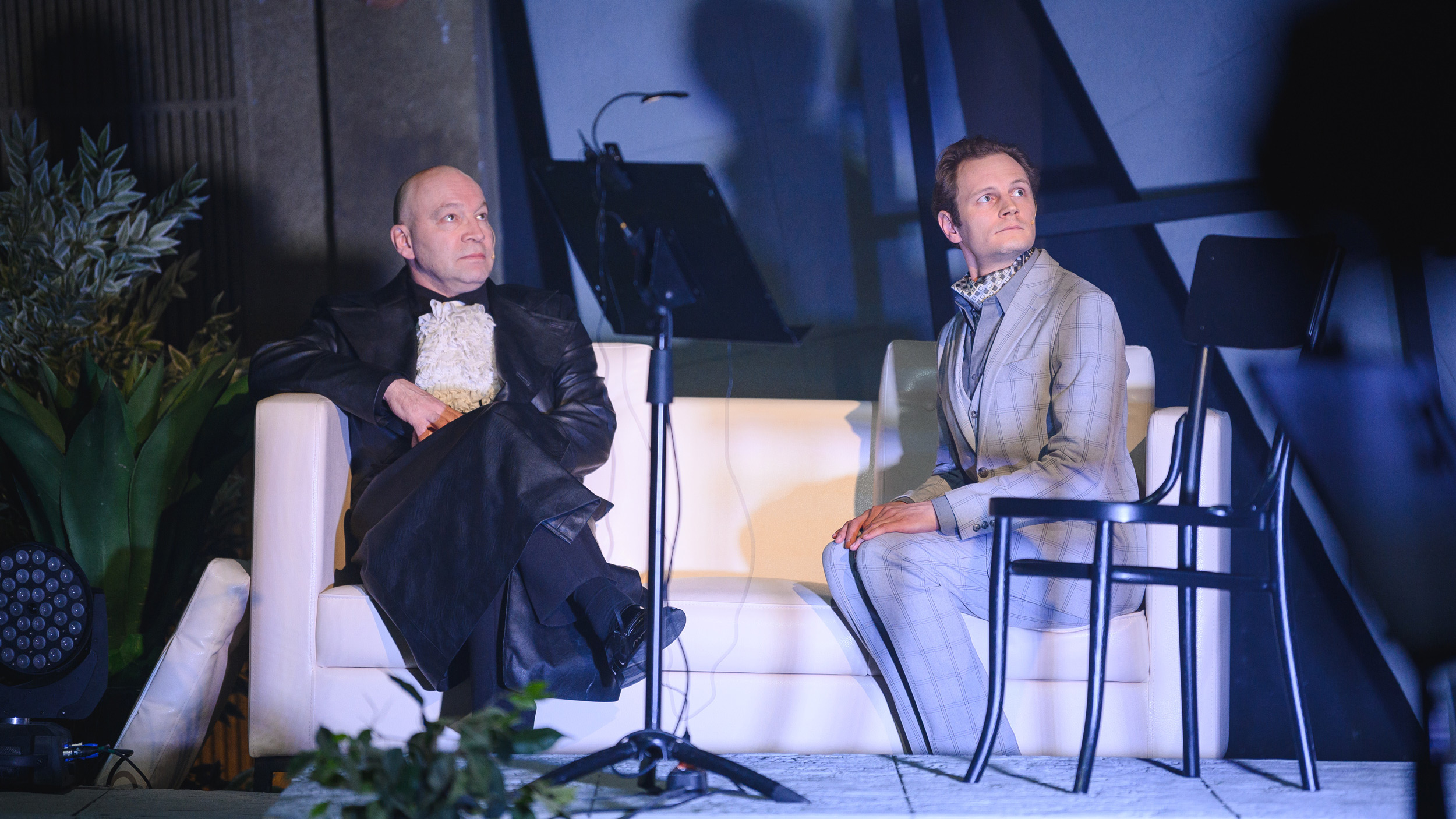 Если на «экран» волюнтаристски прорывается сквозь театральные стены сетевая реальность, то на авансцене разворачивается настоящий классический театр. Конечно, не костюмное действо в духе Пермского драмтеатра советских лет, но театр, который заставляет удовлетворённо расслабиться всех тех, кто ждёт от него таких классических проявлений, как, например, психологическое обоснование действий героев, индивидуальные характеристики персонажей, значимые костюмы и всё такое прочее.