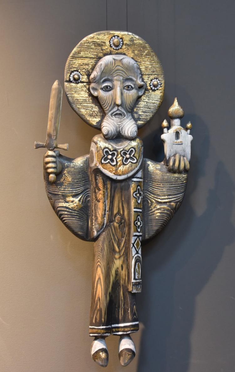 На «Арт-Перми» 2019 года Жарков впервые выставил своего Николу Можайского, и внимательные наблюдатели поняли, что имеют дело с новым пермским художественным феноменом; на «Арт-Перми» 2020 года уже была целая серия деревянных скульптур Жаркова. Тот, первый Никола и в новой экспозиции — на видном месте. В нём собраны все специфические черты работ Жаркова в этом жанре: традиционная иконография храмовой скульптуры сохраняется, но в изображении подчёркнуты, предельно акцентированы детская наивность и простодушие, которые присутствуют и в культовой скульптуре из коллекции Пермской художественной галереи, где есть очень похожий Никола, но присутствуют подспудно, ненамеренно, невыявленно.